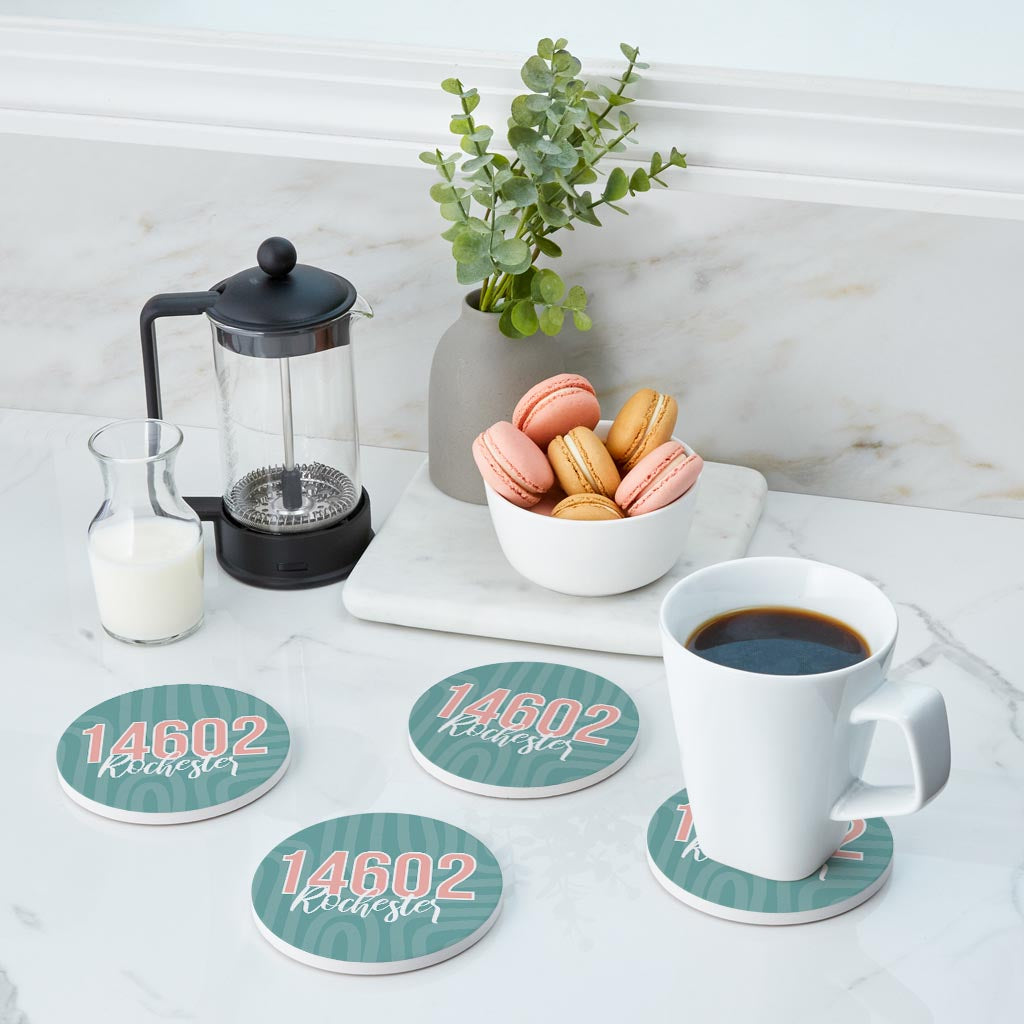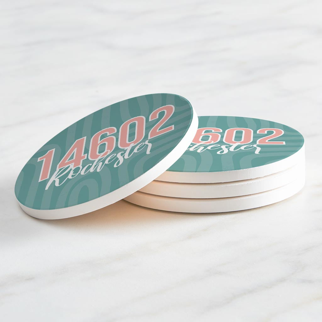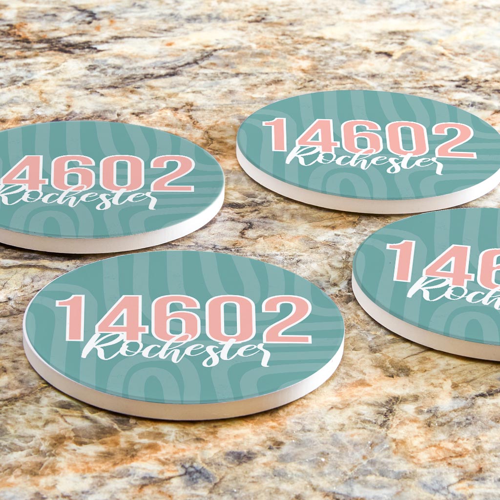 Boho Color City Zip On Blue New York Rochester | Absorbent Coasters | Set of 4 | Min 2