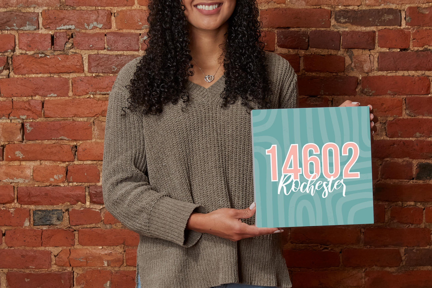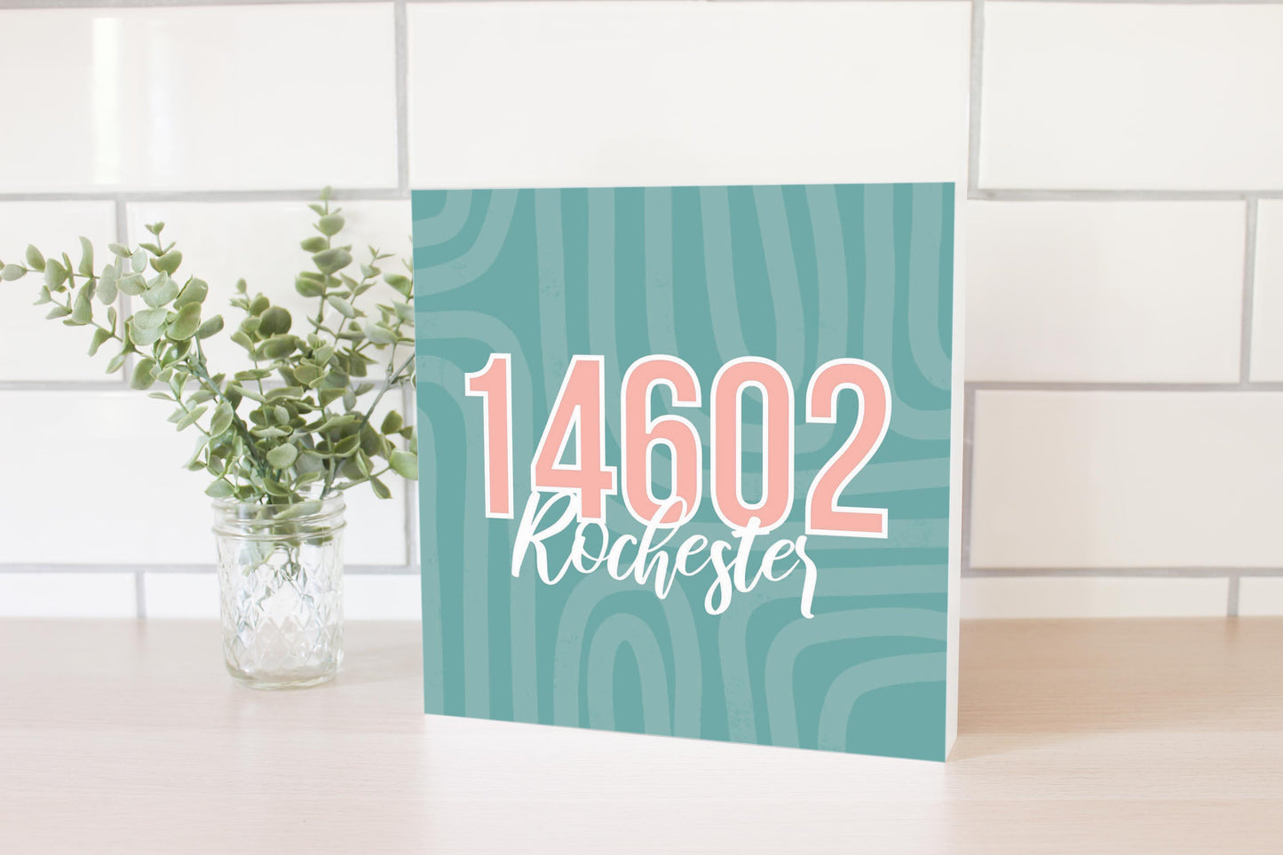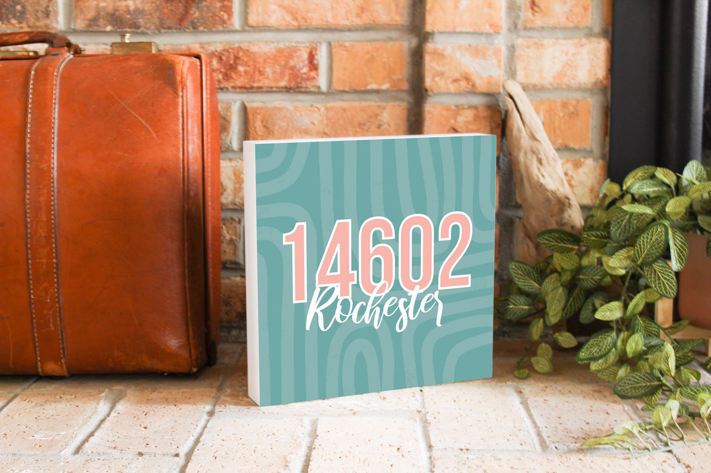 Boho Color City Zip On Blue New York Rochester | Wood Block | Eaches | Min 2
