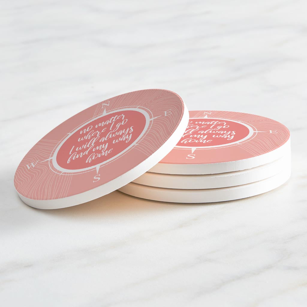 Boho Color Compass On Pink Quote | Absorbent Coasters | Set of 4 | Min 2