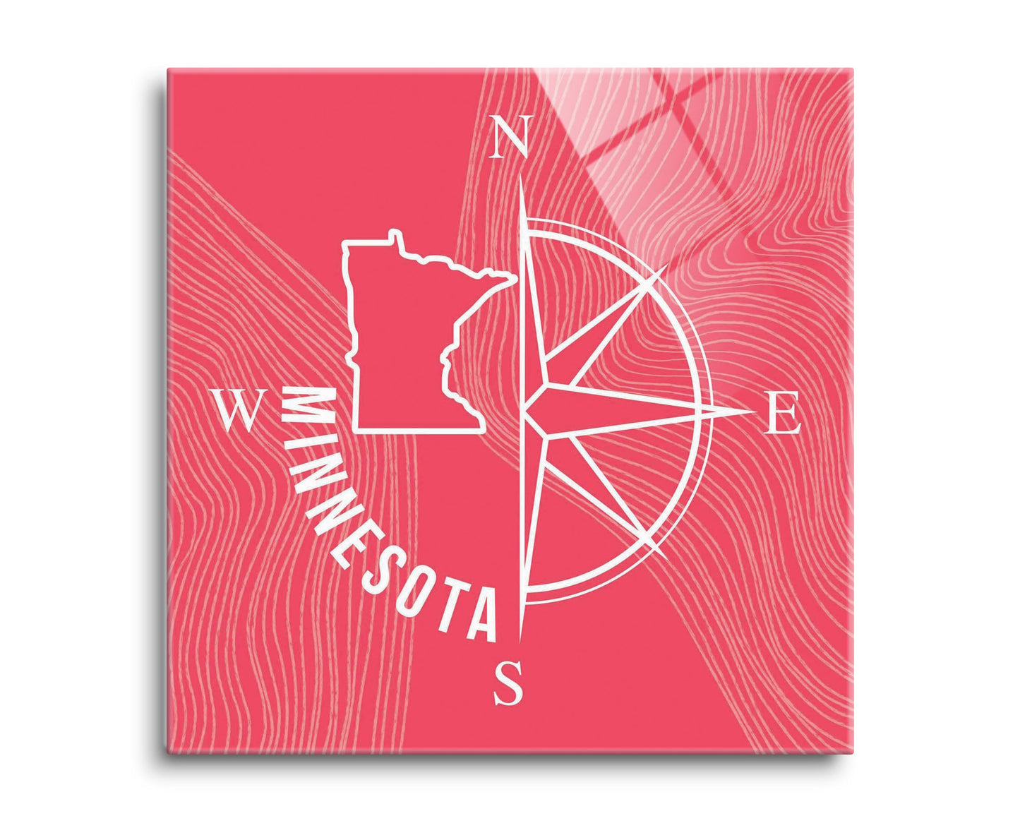 Boho Color Compass State On Pink Minnesota | Hi-Def Glass Art | Eaches | Min 2