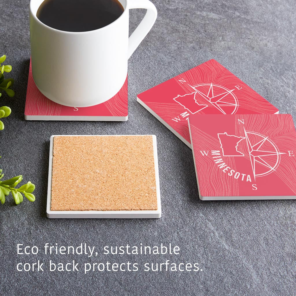 Boho Color Compass State On Pink Minnesota | Absorbent Coasters | Set of 4 | Min 2