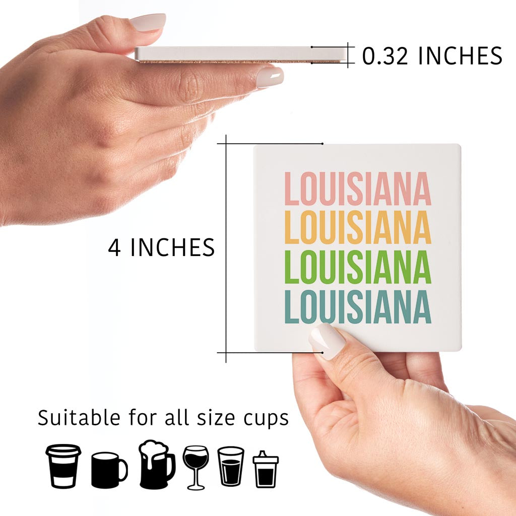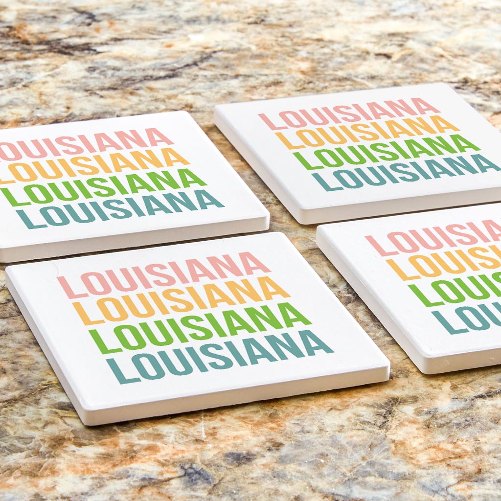 Boho Color Repeated State Name Louisiana| Absorbent Coasters | Set of 4 | Min 2