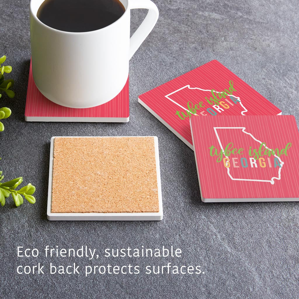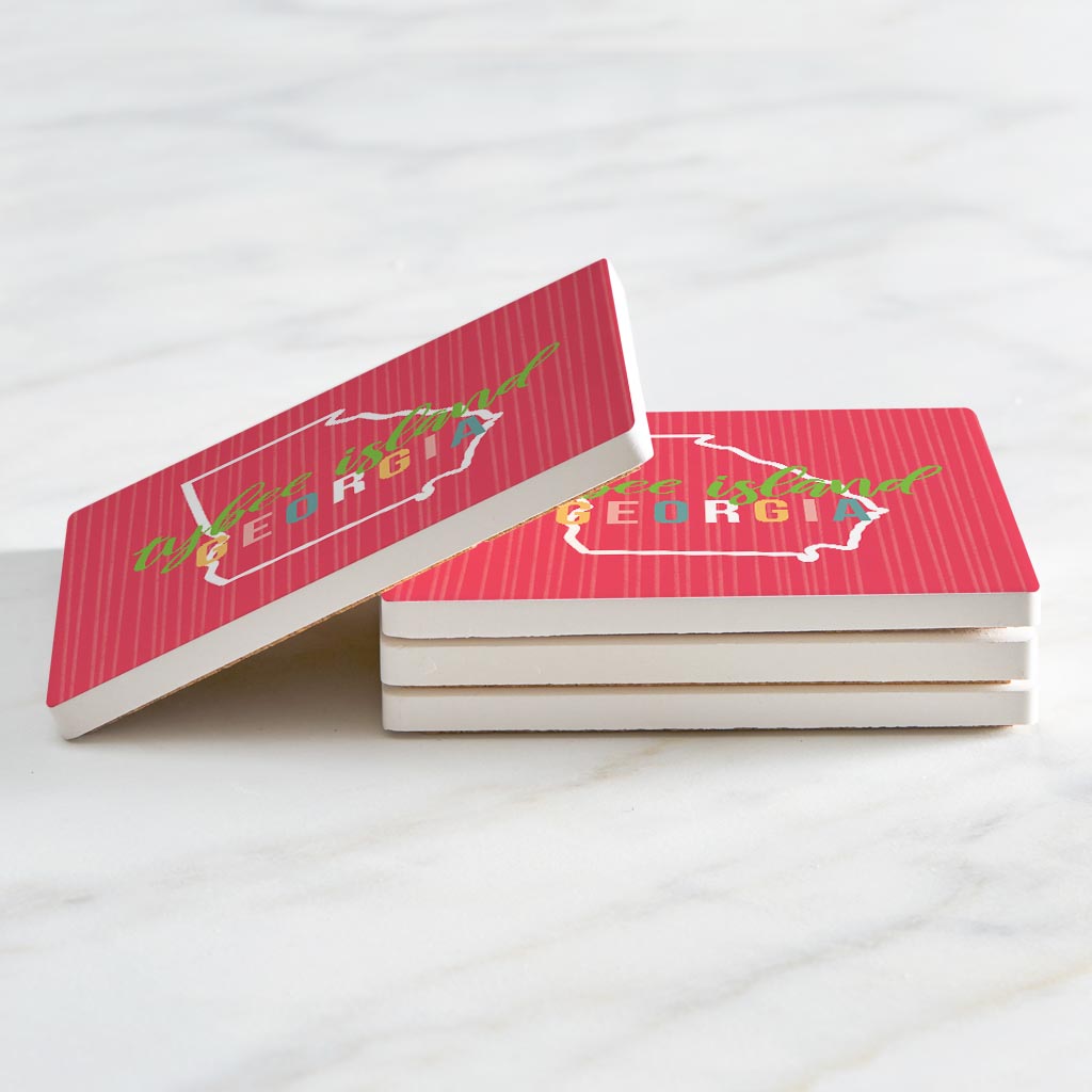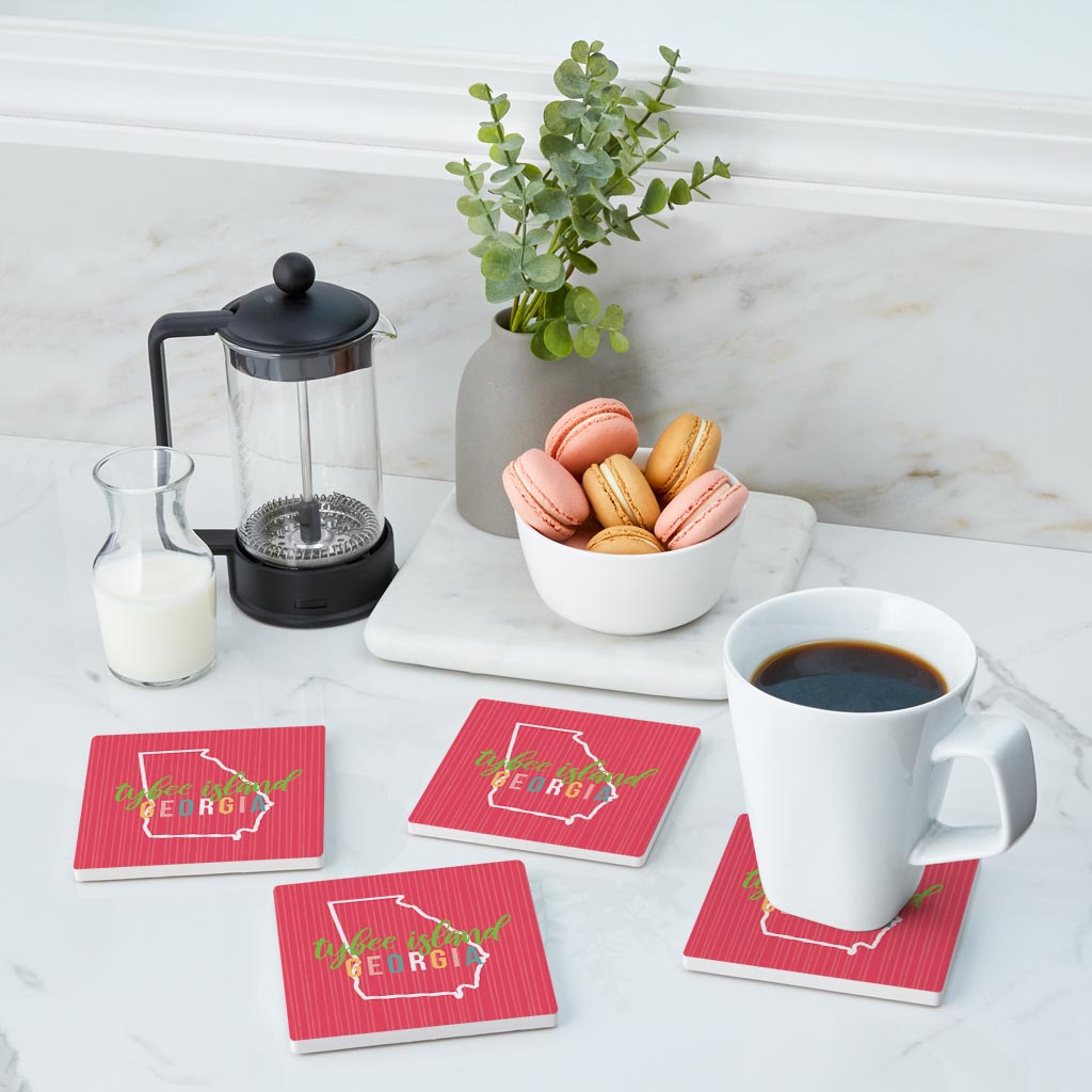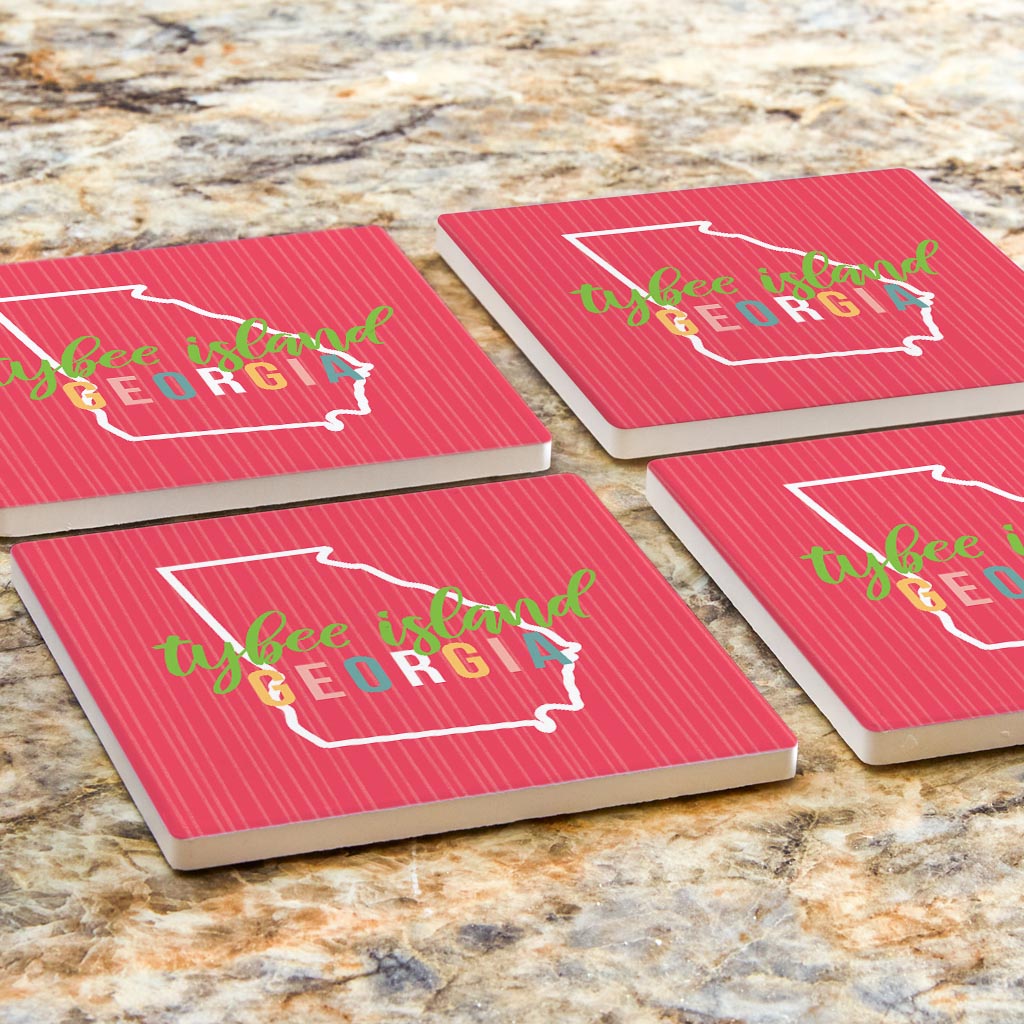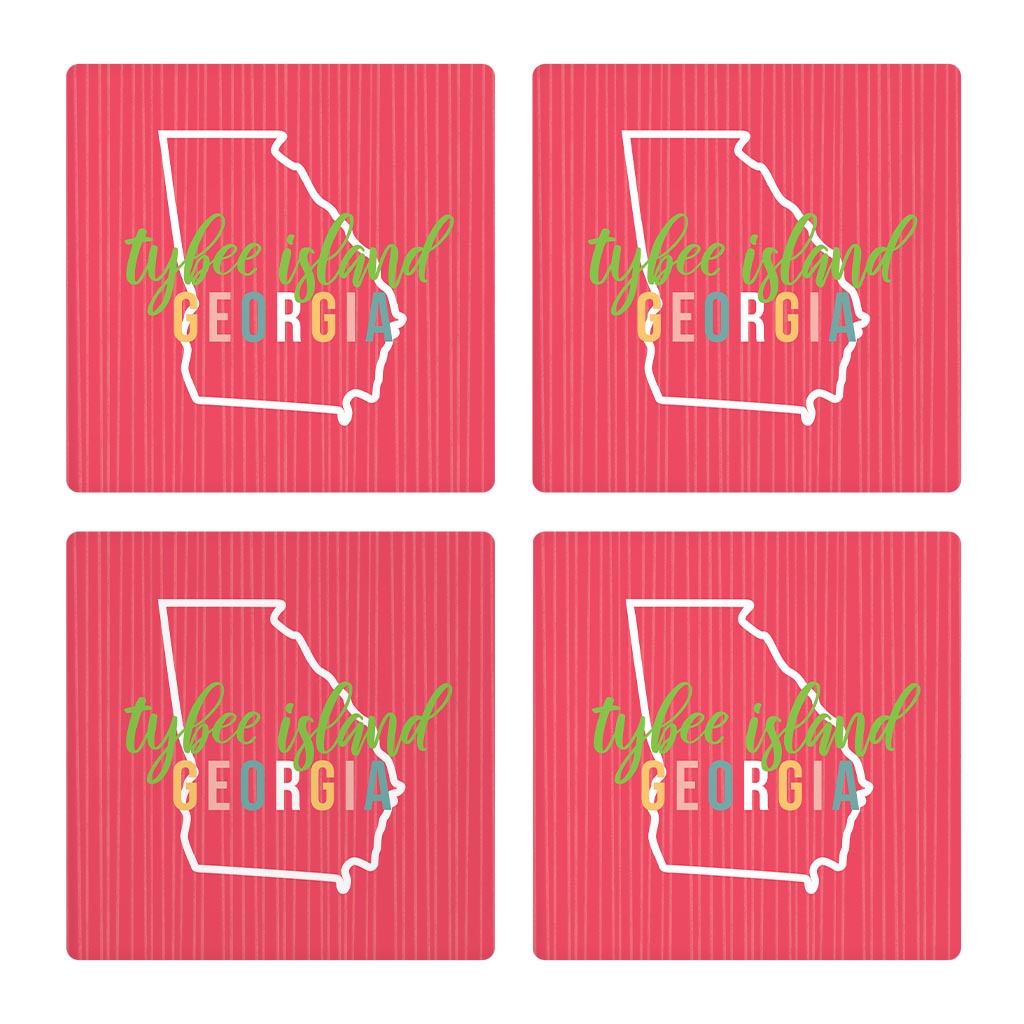 Boho Color State On Pink Georgia Tybee Island| Absorbent Coasters | Set of 4 | Min 2