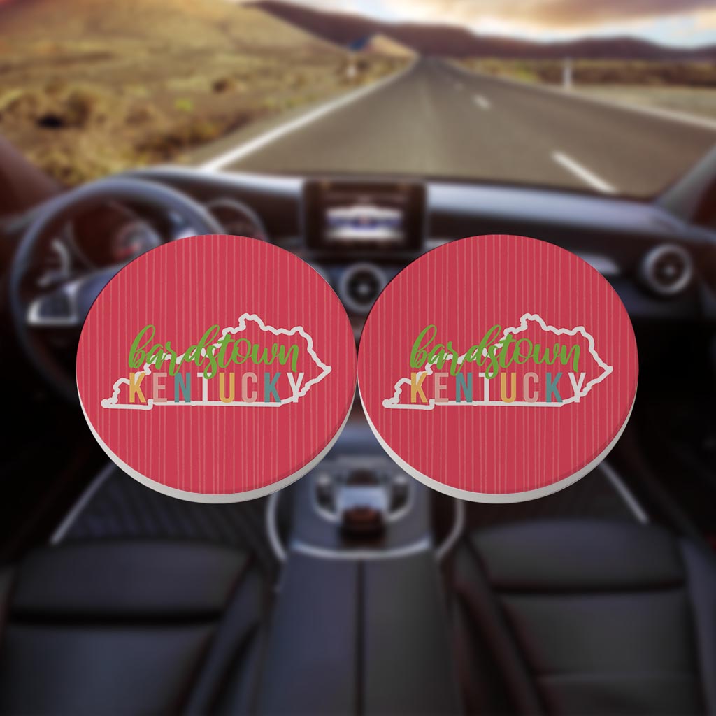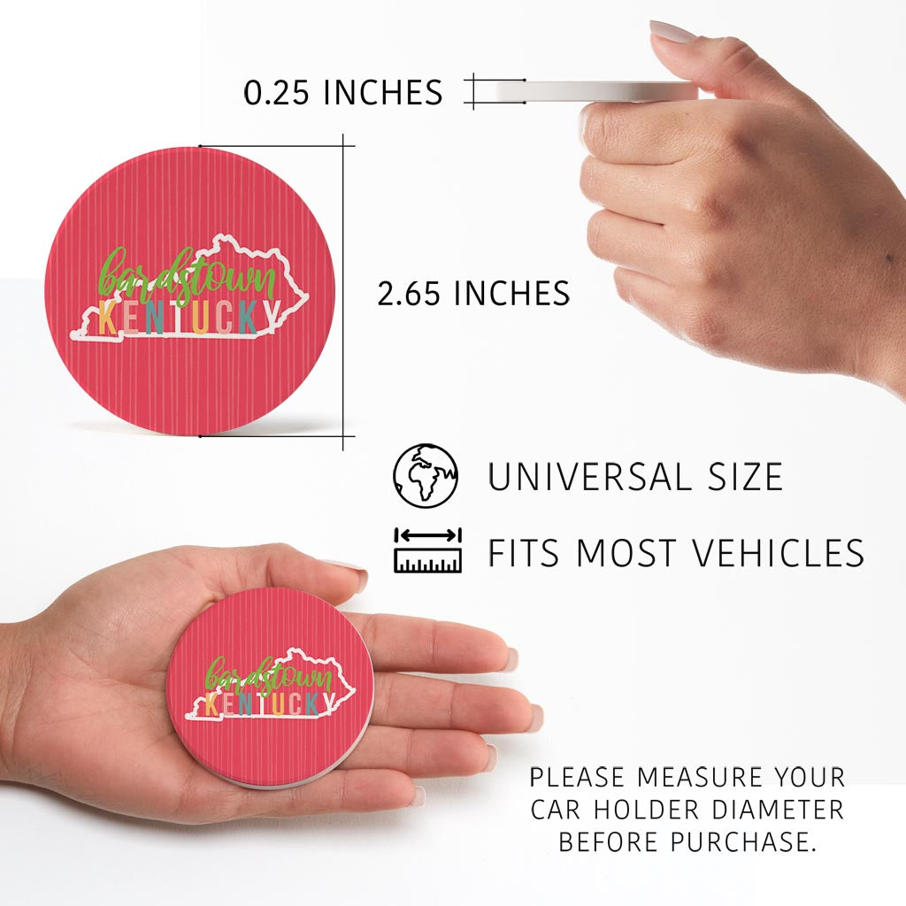 Boho Color State On Pink Kentucky Bardstown| Absorbent Car Coasters | Set of 2 | Min 4