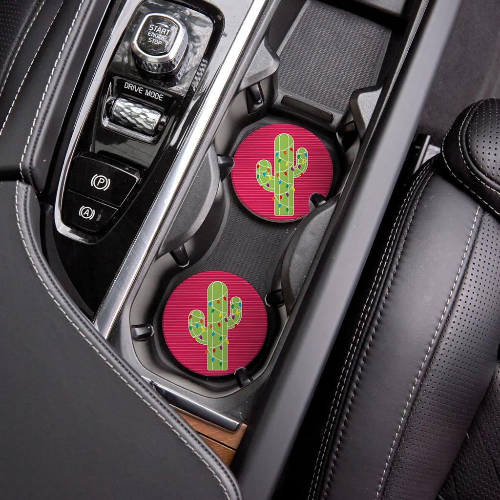 Bright Christmas Cactus | Absorbent Car Coasters | Set of 2 | Min 4