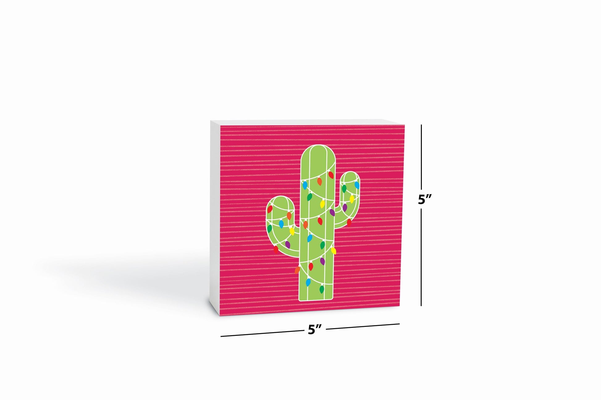 Bright Christmas Cactus | Wood Block | Eaches | Min 4