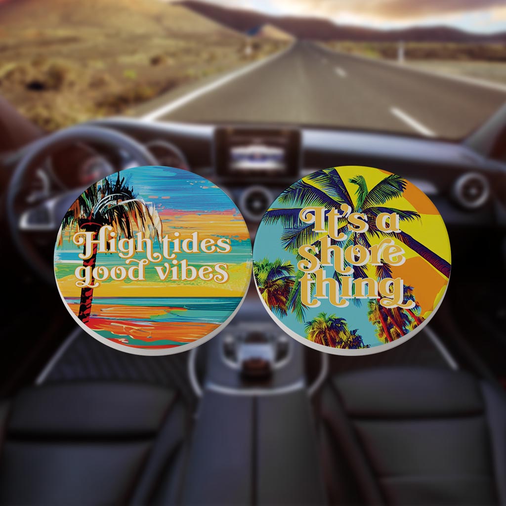 Bright Florida Palm Trees | Absorbent Car Coasters | Set of 2 | Min 4