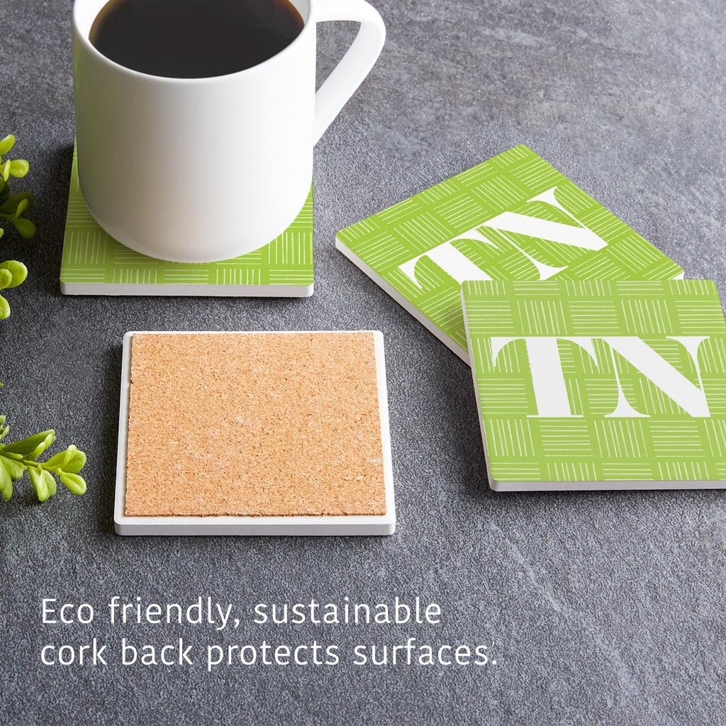 Bright Modern Abbreviated On Green Tennessee | Absorbent Coasters | Set of 4 | Min 2