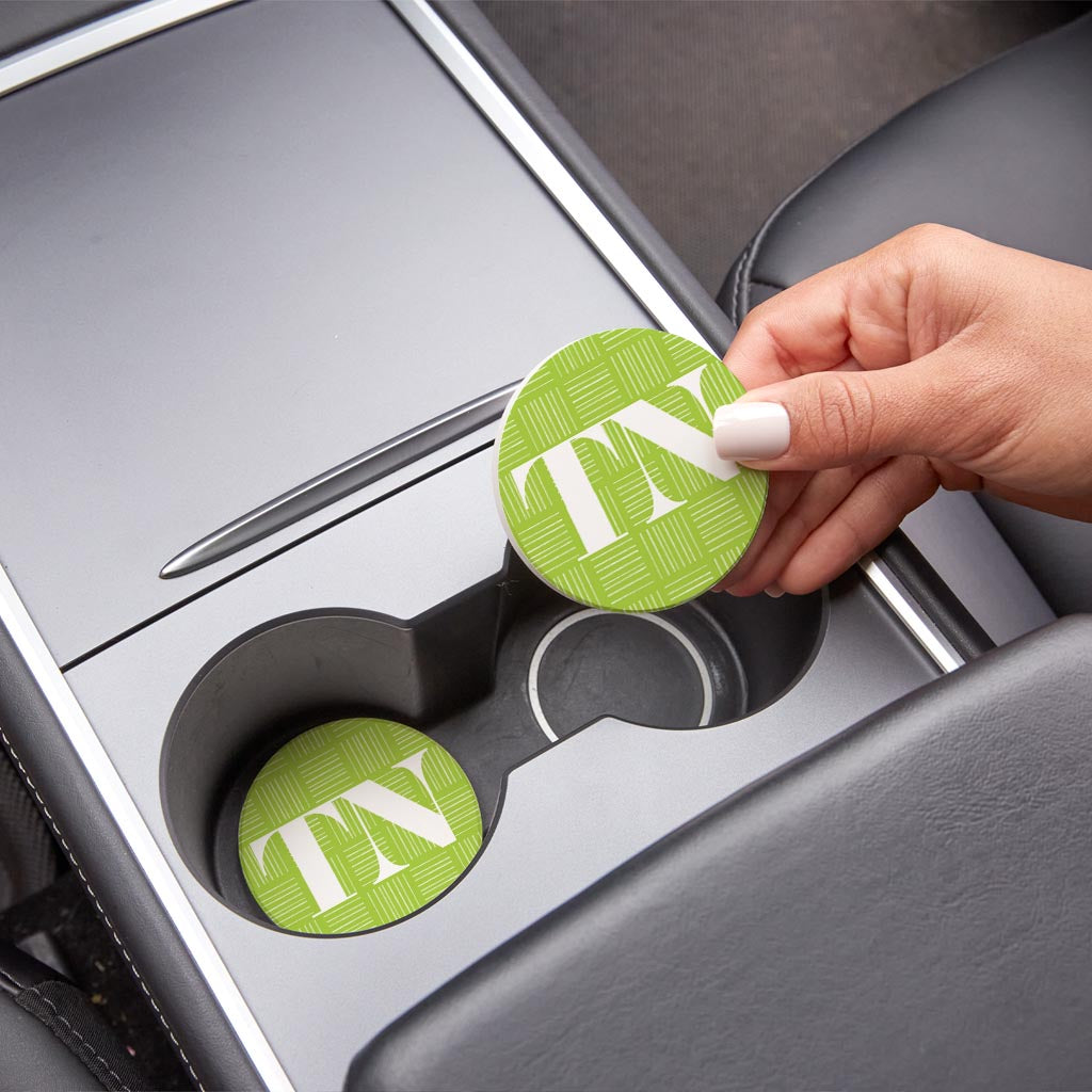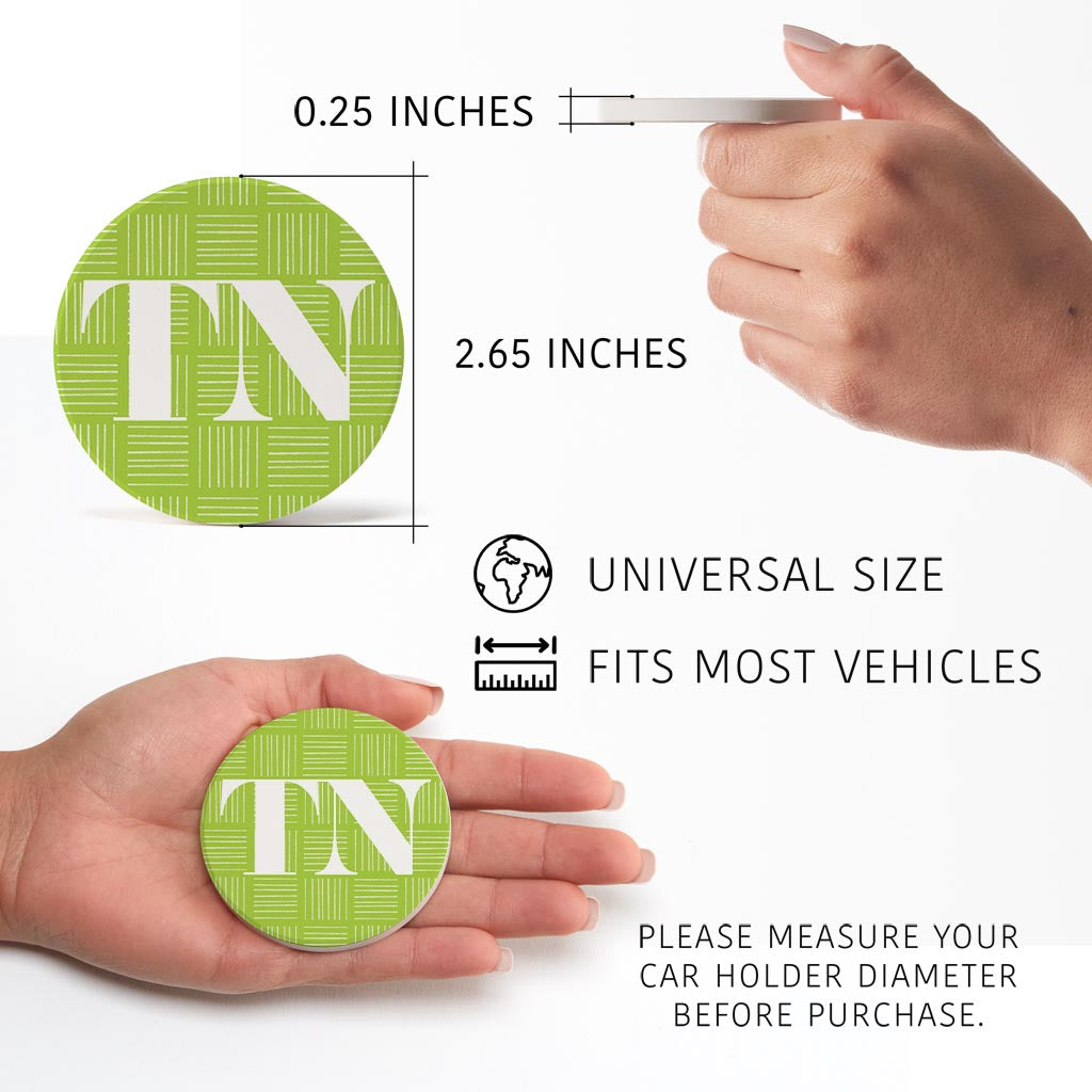 Bright Modern Abbreviated On Green Tennessee | Absorbent Car Coasters | Set of 2 | Min 4