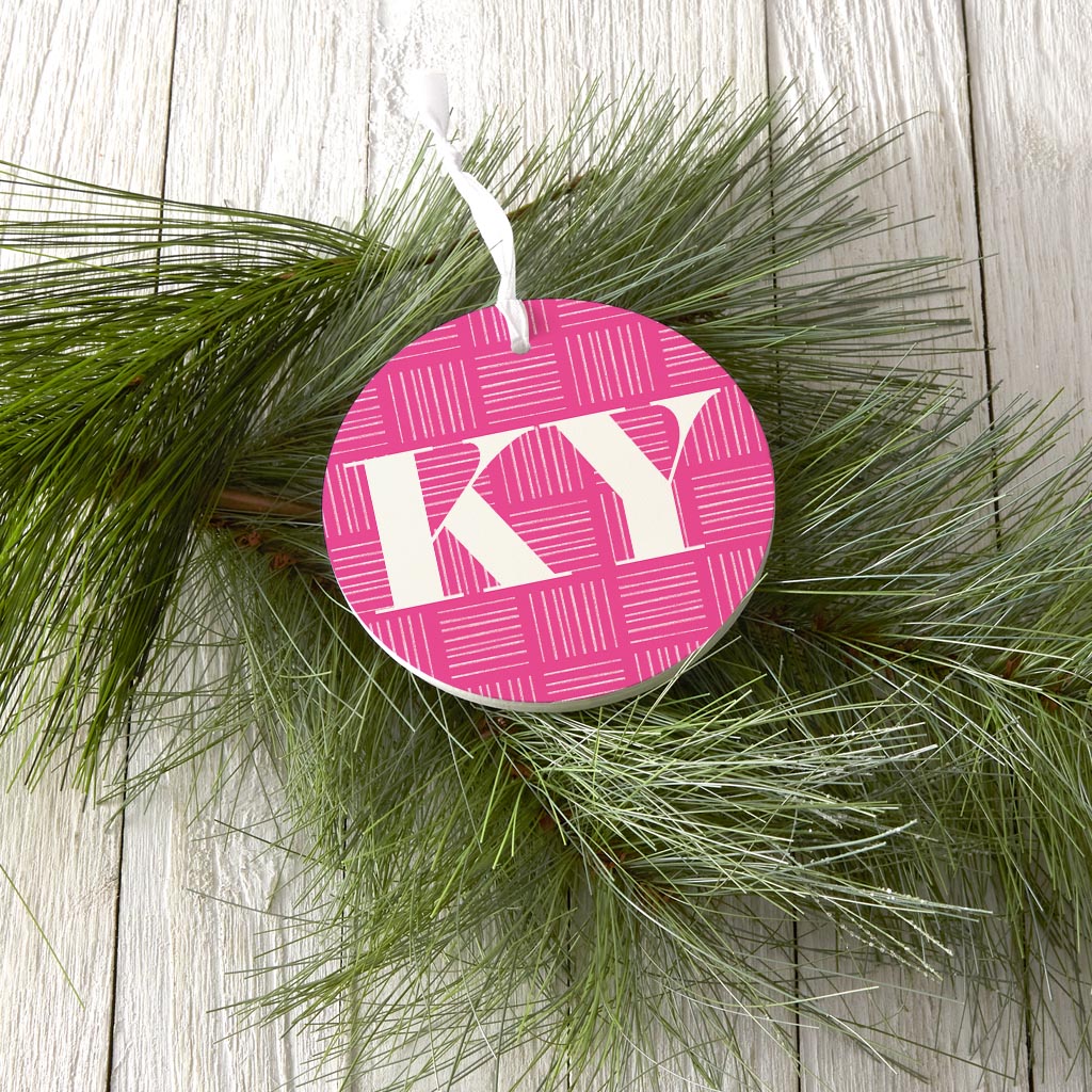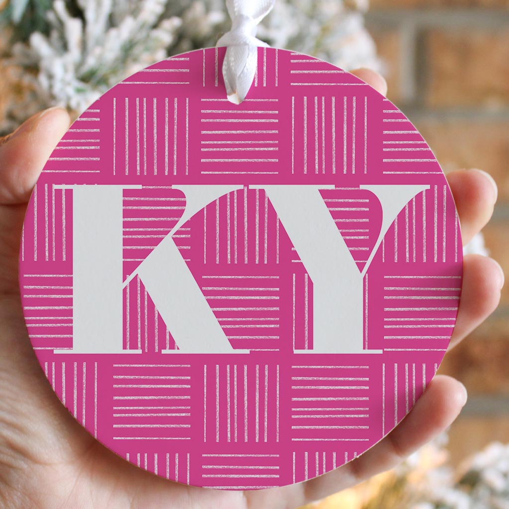 Bright Modern Abbreviated On Pink Kentucky | Wood Ornament | Eaches | Min 6