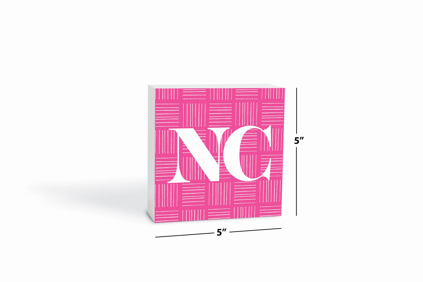 Bright Modern Abbreviated On Pink North Carolina| Wood Block | Eaches | Min 4