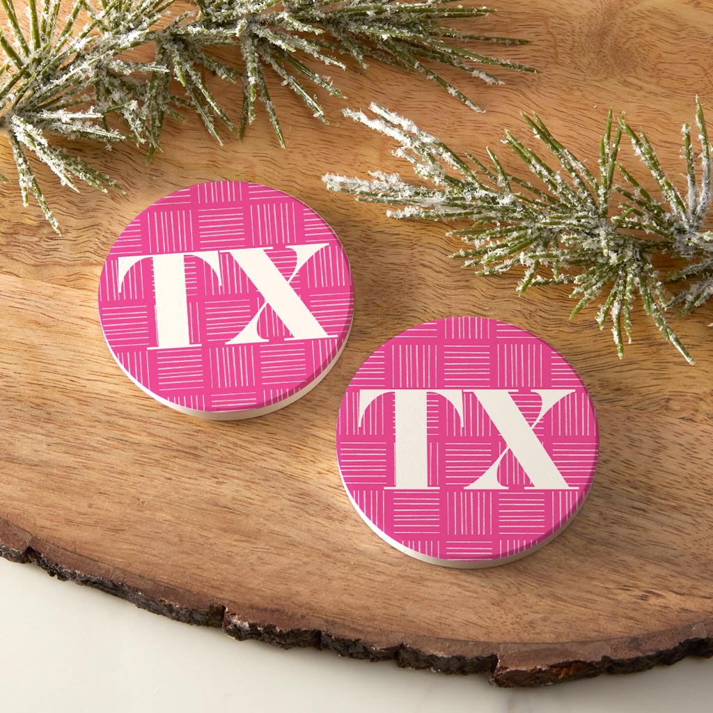 Bright Modern Abbreviated On Pink Texas| Absorbent Car Coasters | Set of 2 | Min 4
