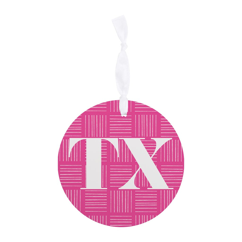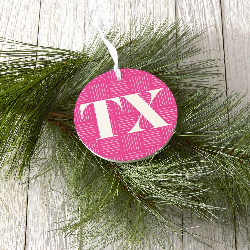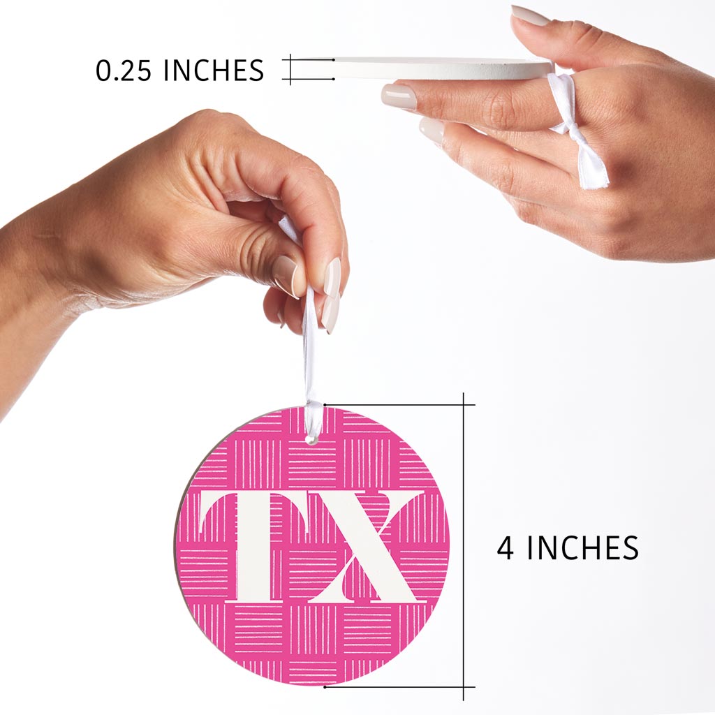 Bright Modern Abbreviated On Pink Texas | Wood Ornament | Eaches | Min 6
