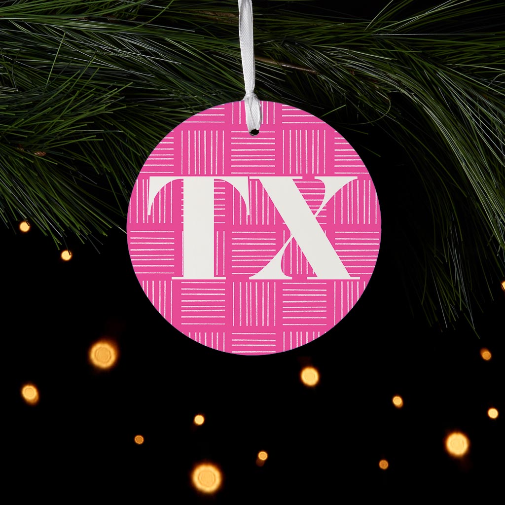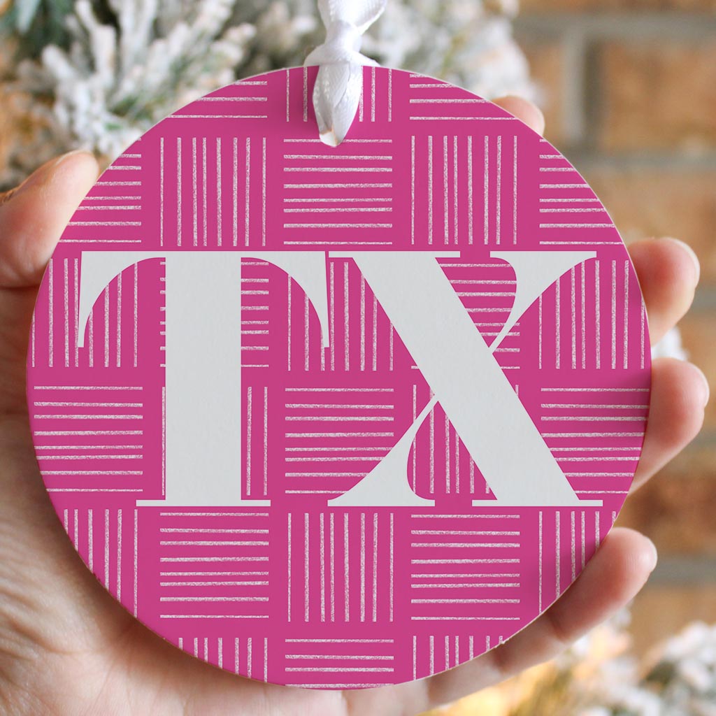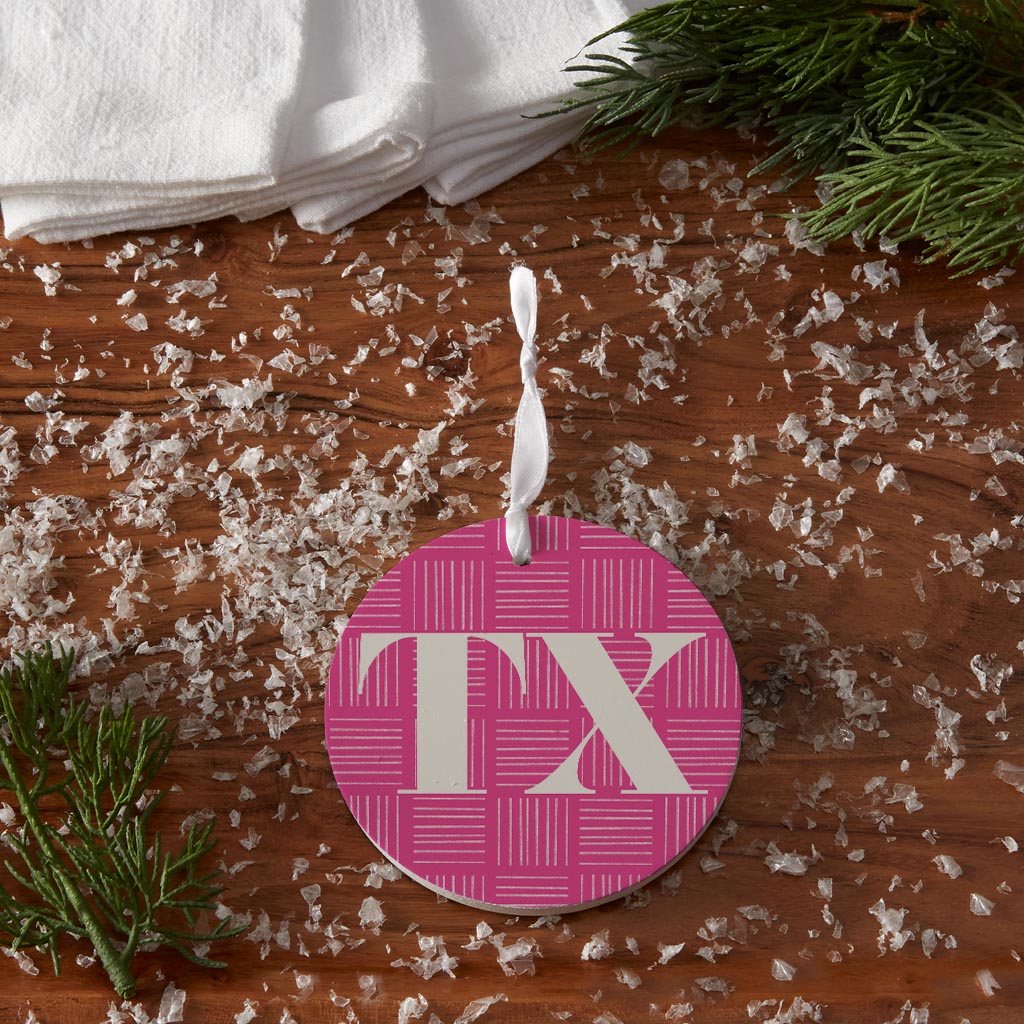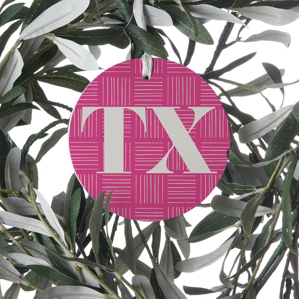 Bright Modern Abbreviated On Pink Texas | Wood Ornament | Eaches | Min 6