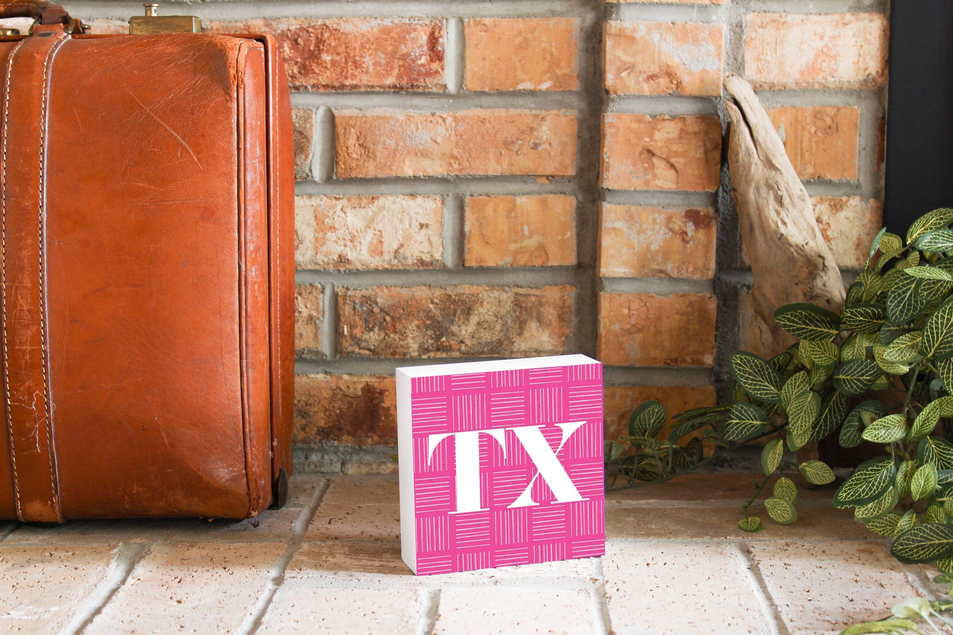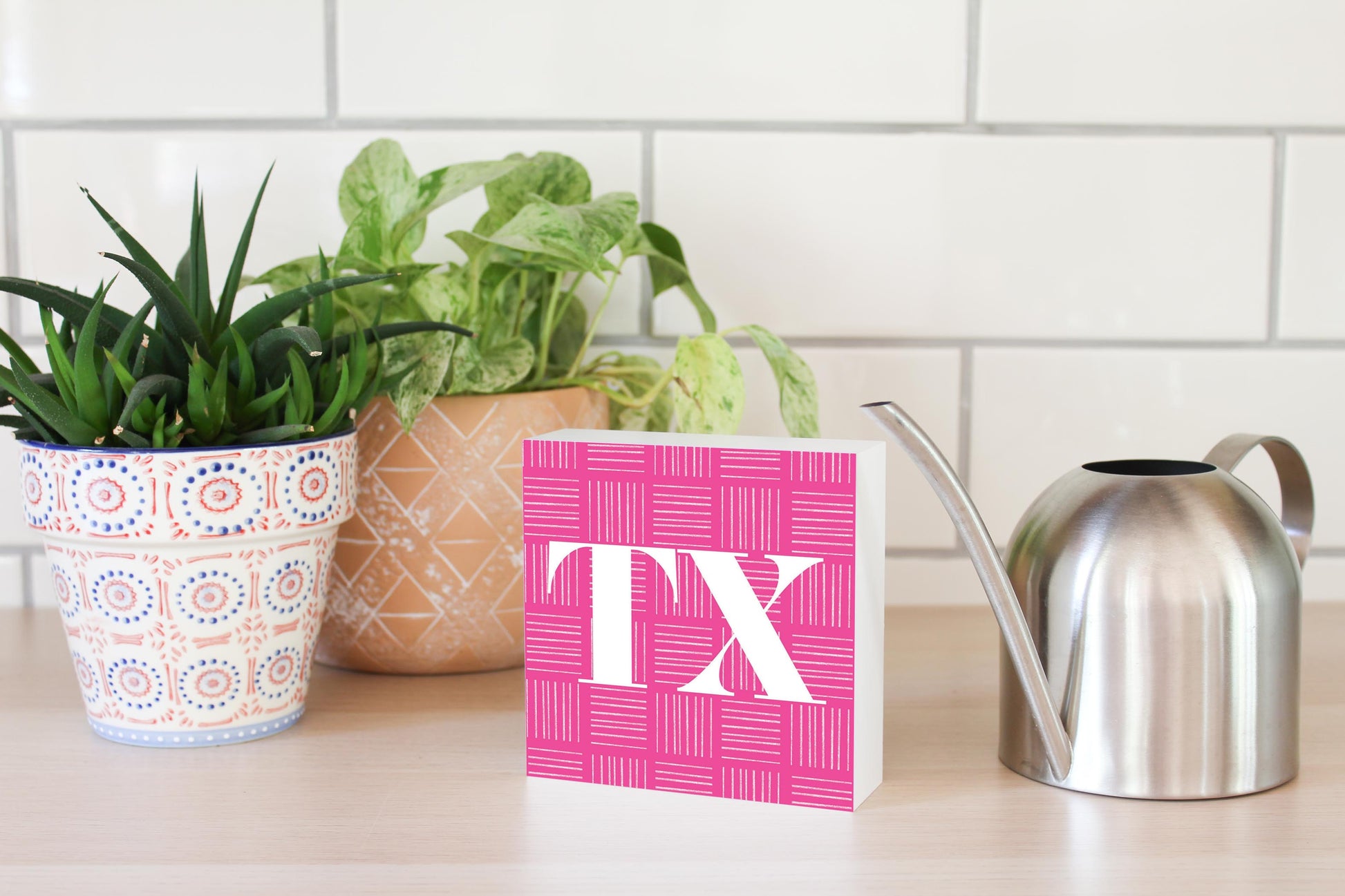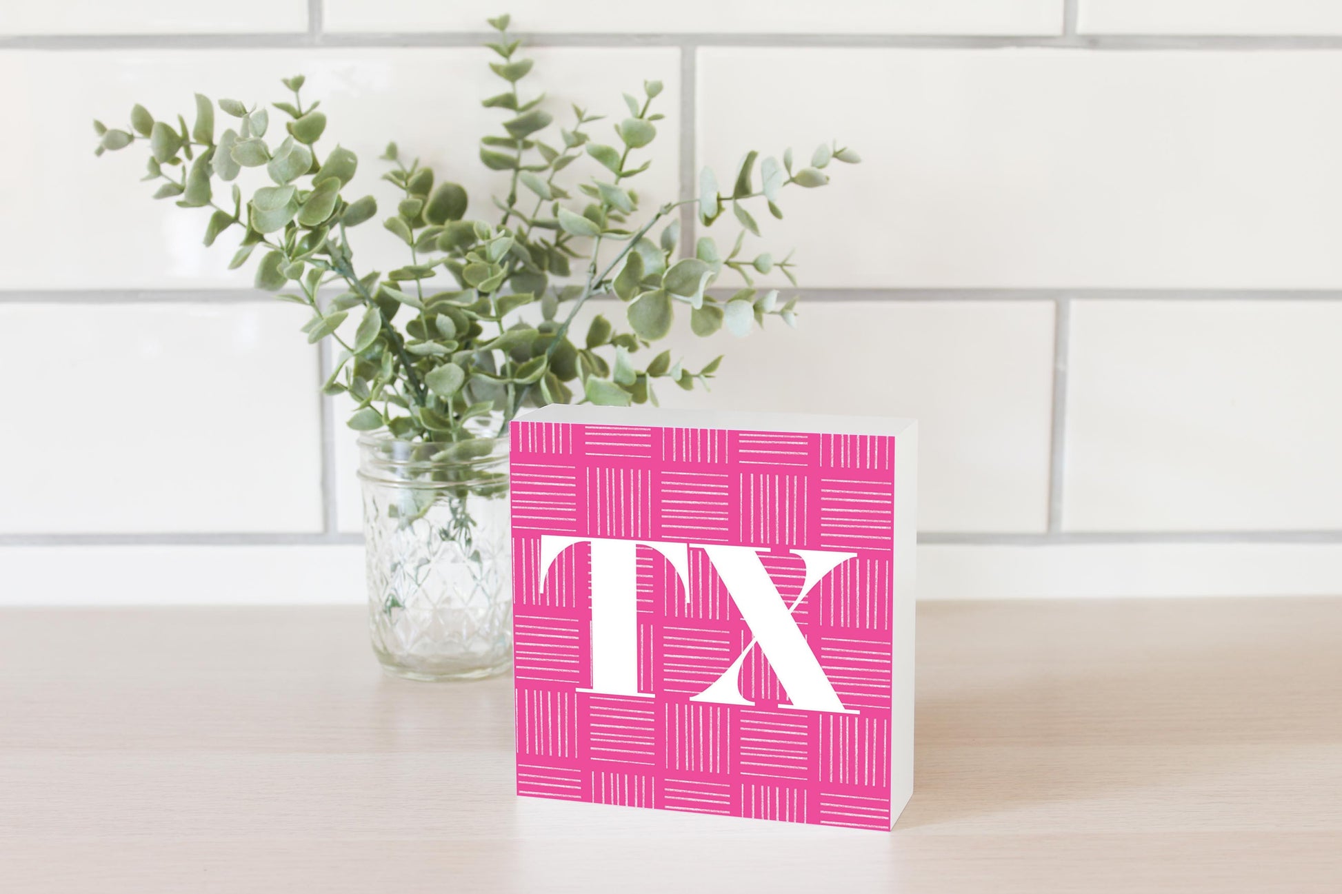 Bright Modern Abbreviated On Pink Texas | Wood Block | Eaches | Min 4