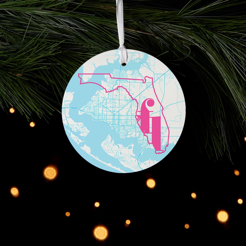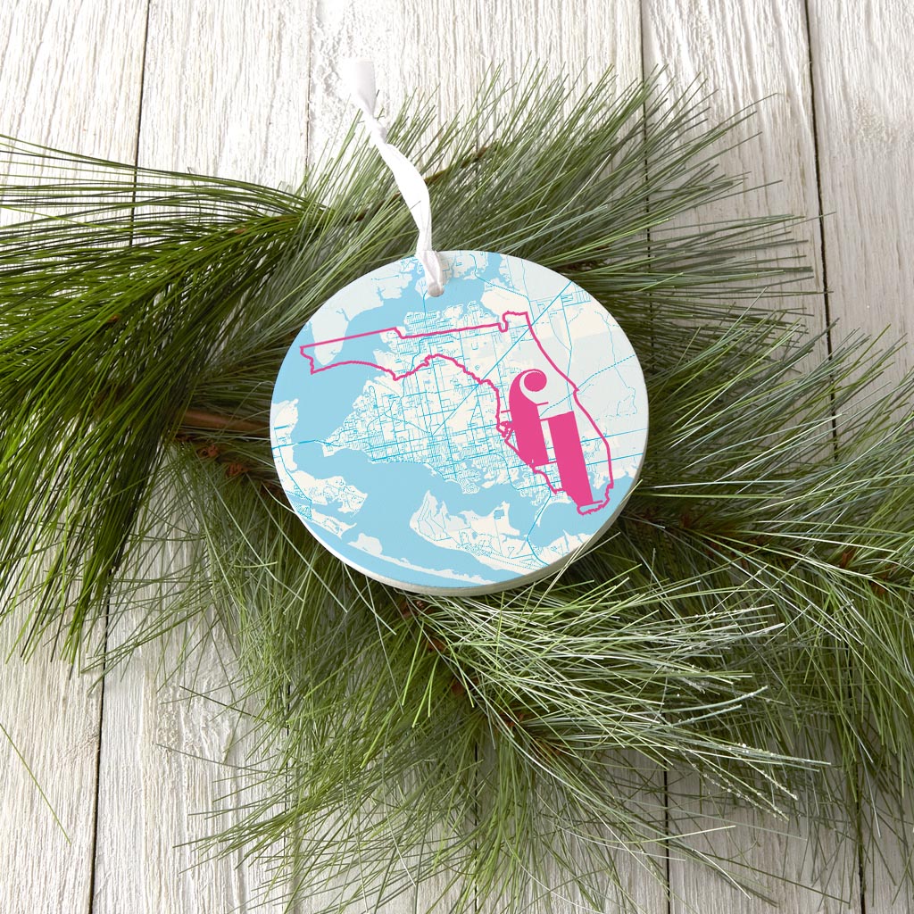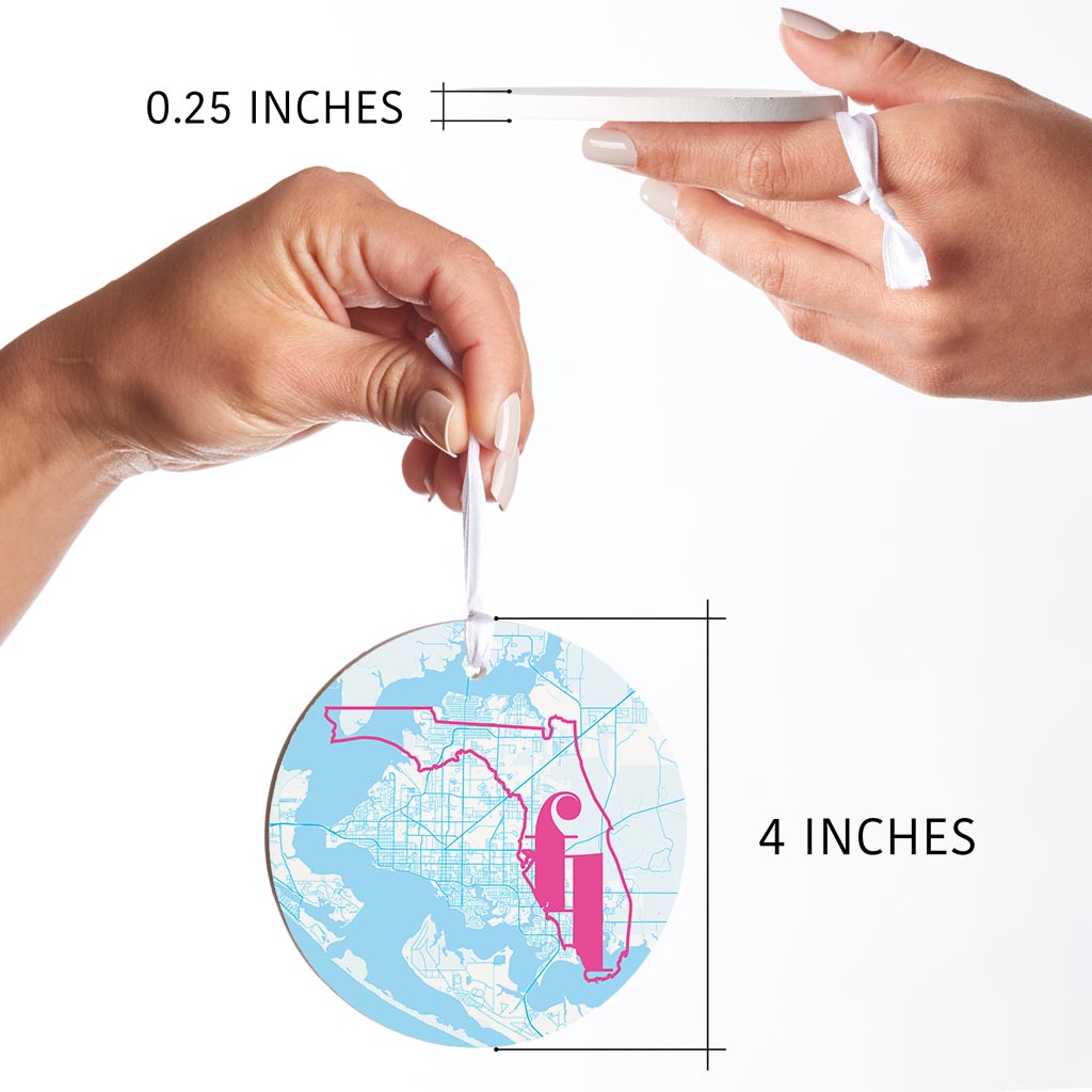 Bright Modern Abbreviated State Map Blue Florida Panama| Wood Ornament | Eaches | Min 6