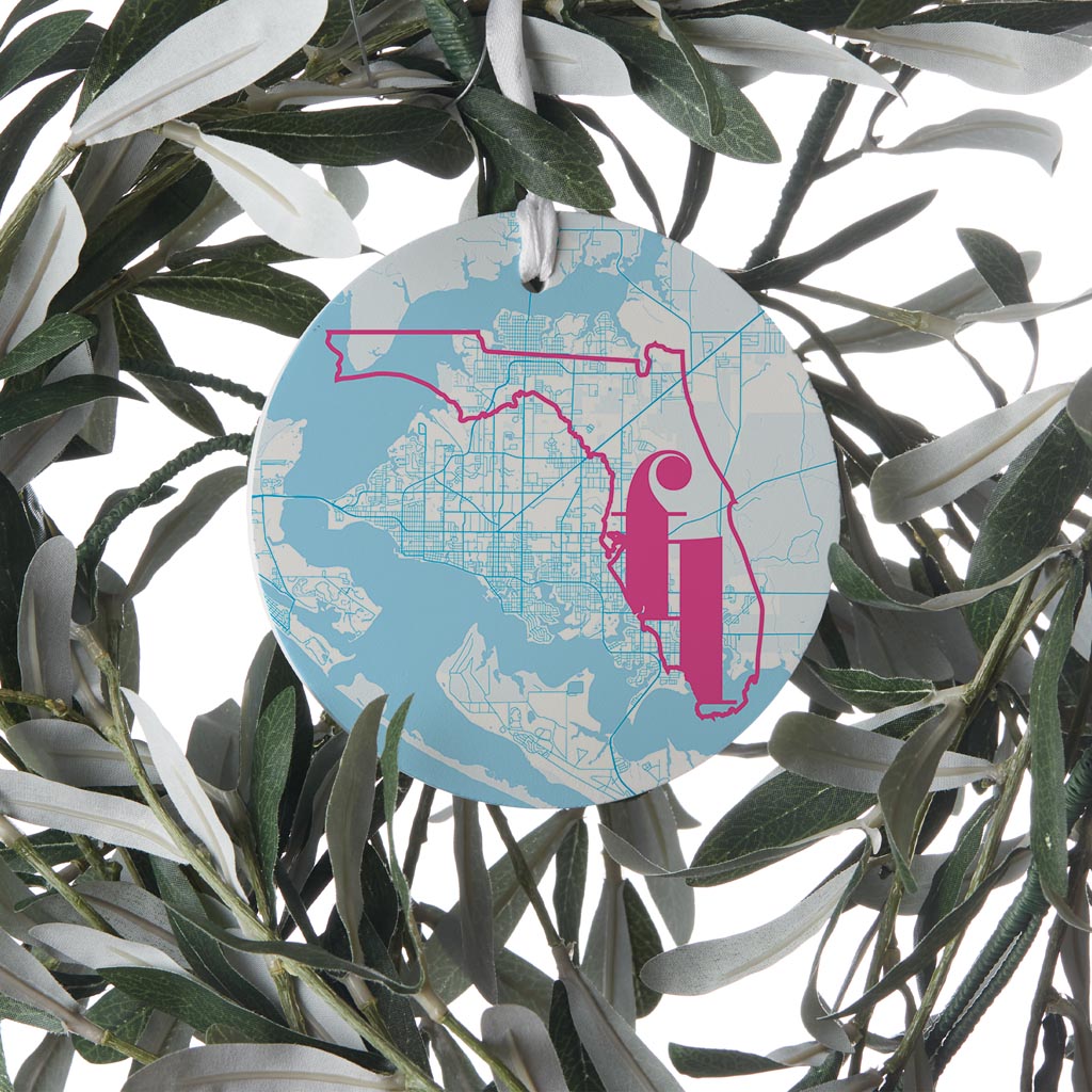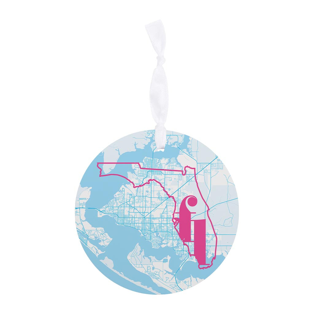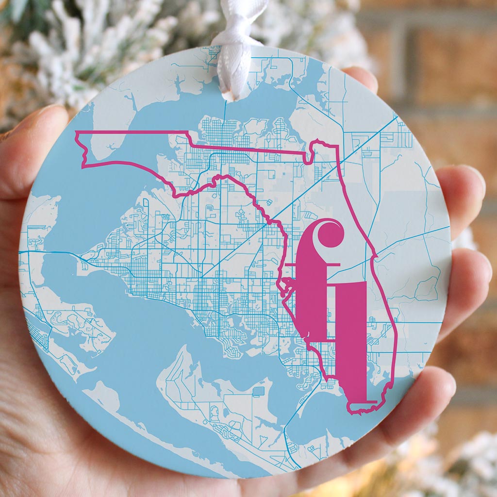 Bright Modern Abbreviated State Map Blue Florida Panama| Wood Ornament | Eaches | Min 6