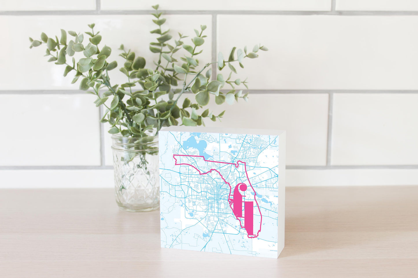 Bright Modern Abbreviated State Map Blue Florida Tallahassee | Wood Block | Eaches | Min 4