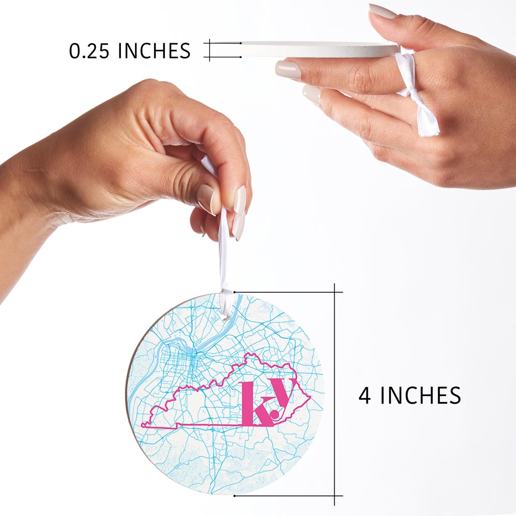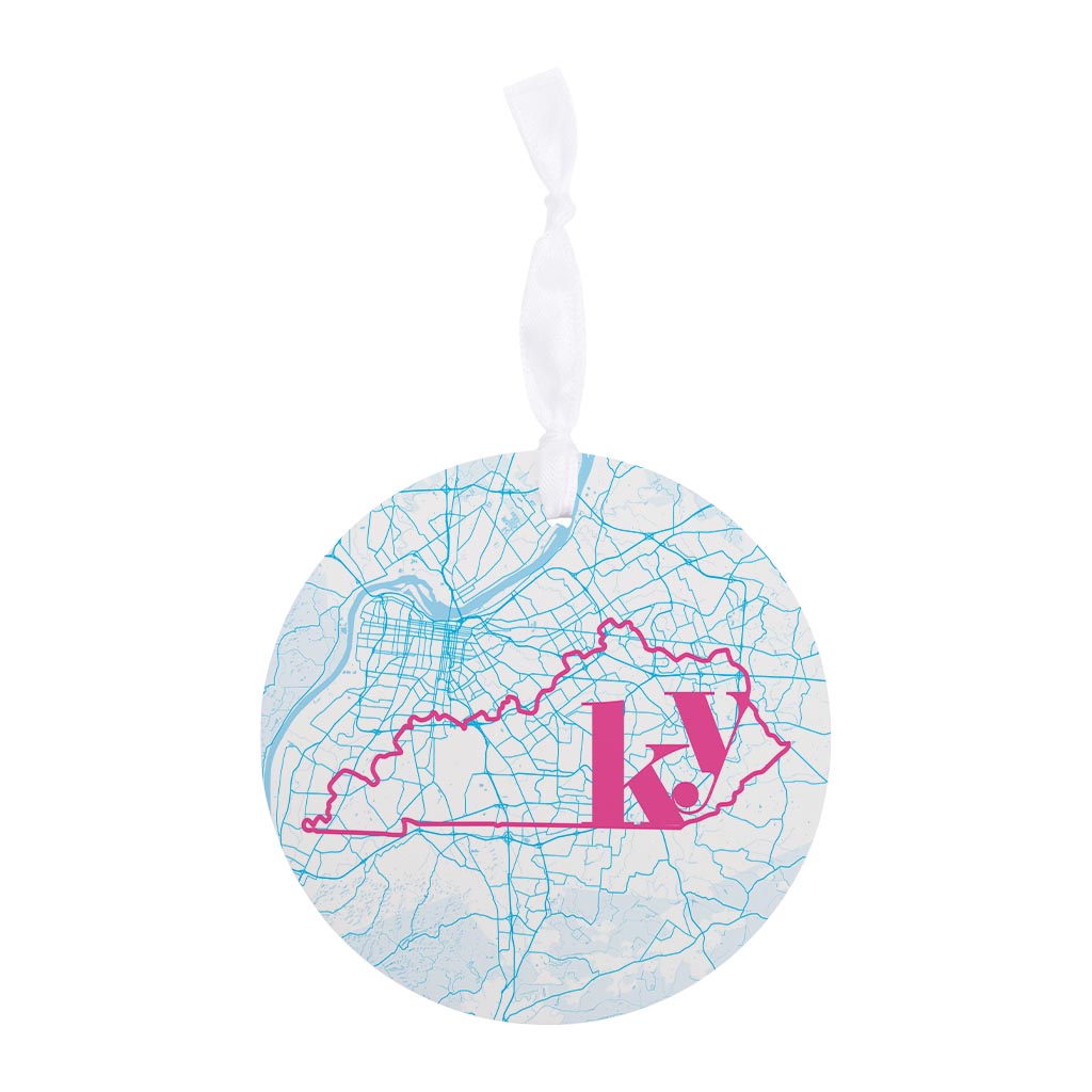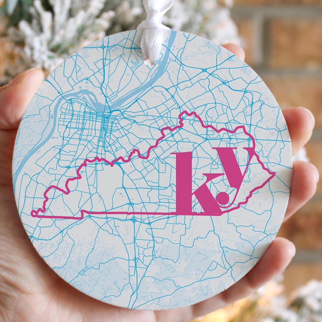Bright Modern Abbreviated State Map Blue Kentucky Louisville | Wood Ornament | Eaches | Min 6