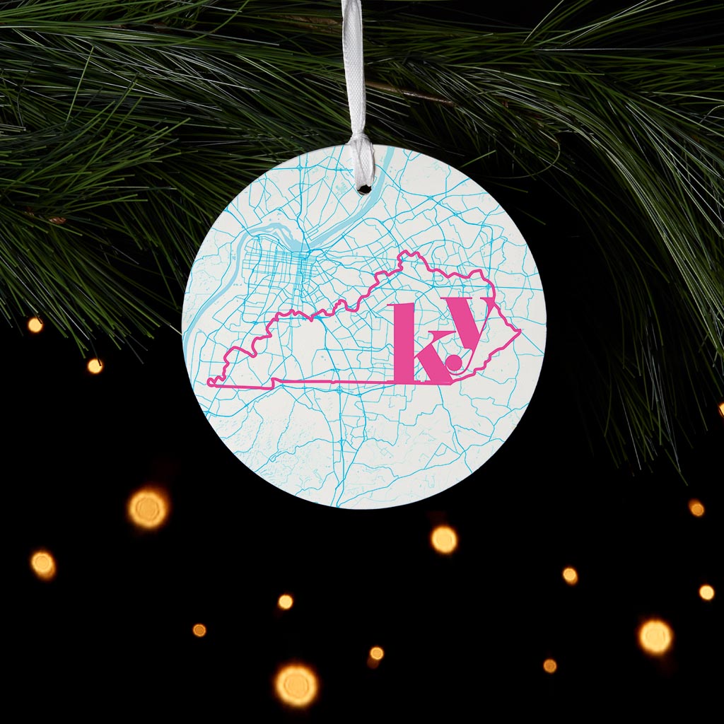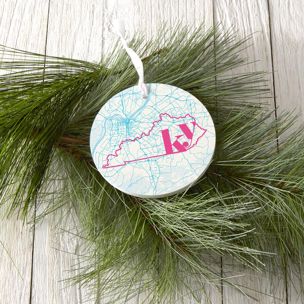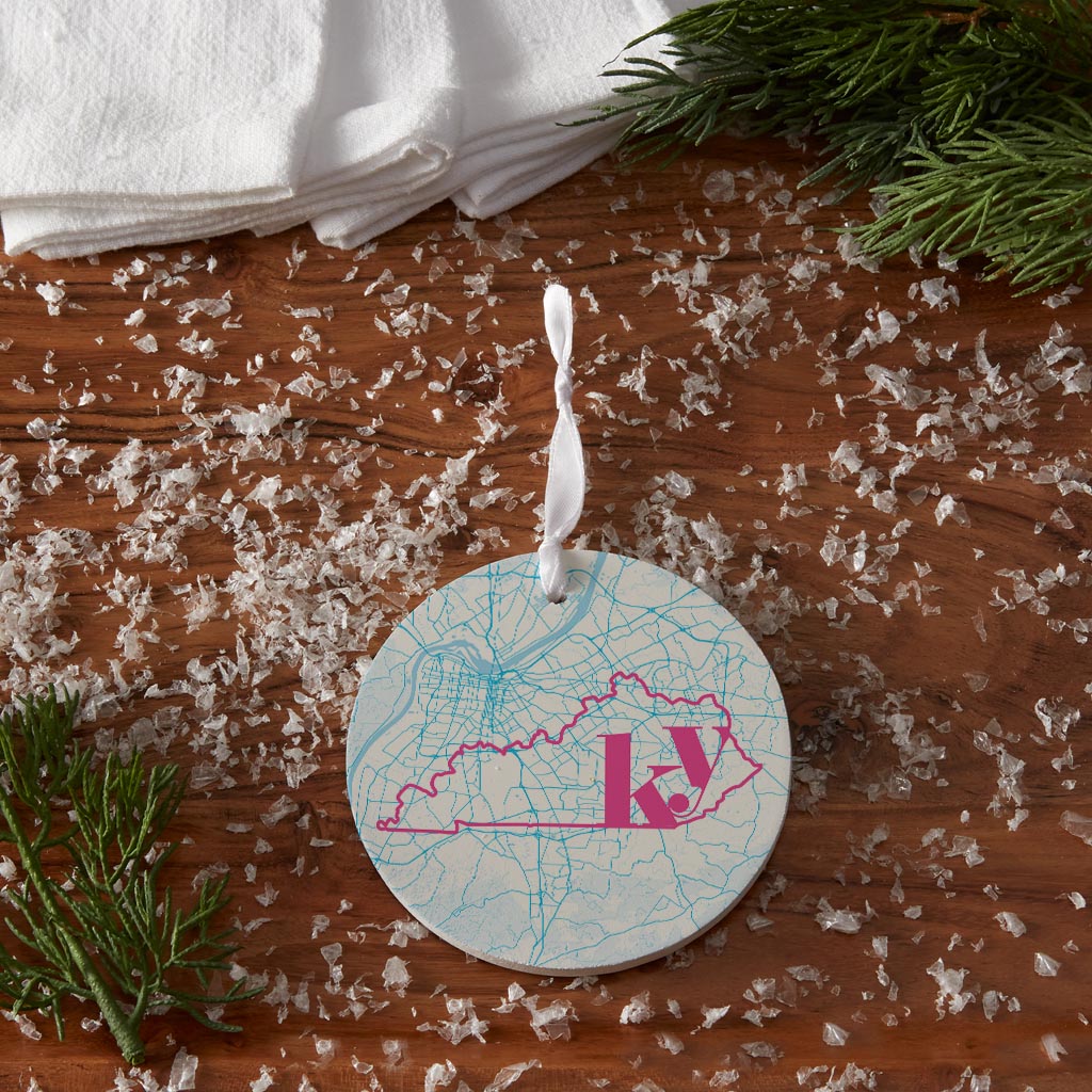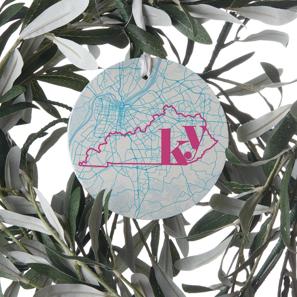 Bright Modern Abbreviated State Map Blue Kentucky Louisville | Wood Ornament | Eaches | Min 6