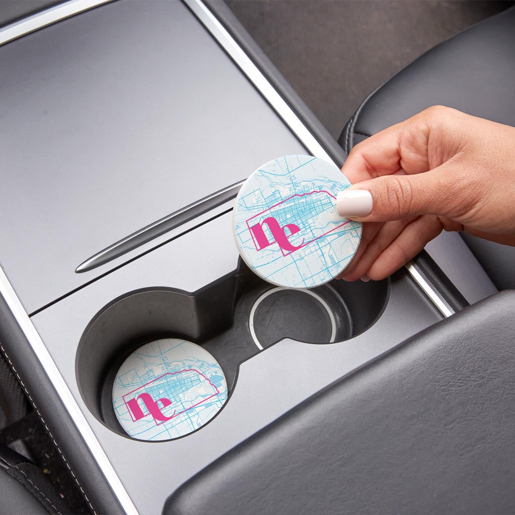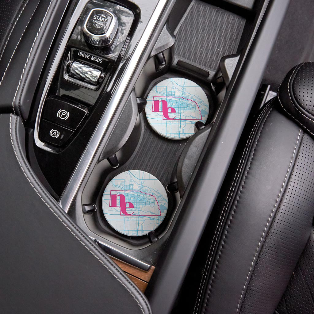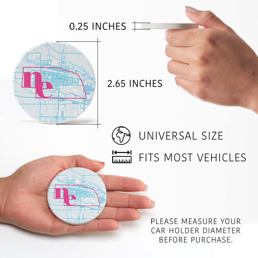 Bright Modern Abbreviated State Map Blue Nebraska North Platte| Absorbent Car Coasters | Set of 2 | Min 4