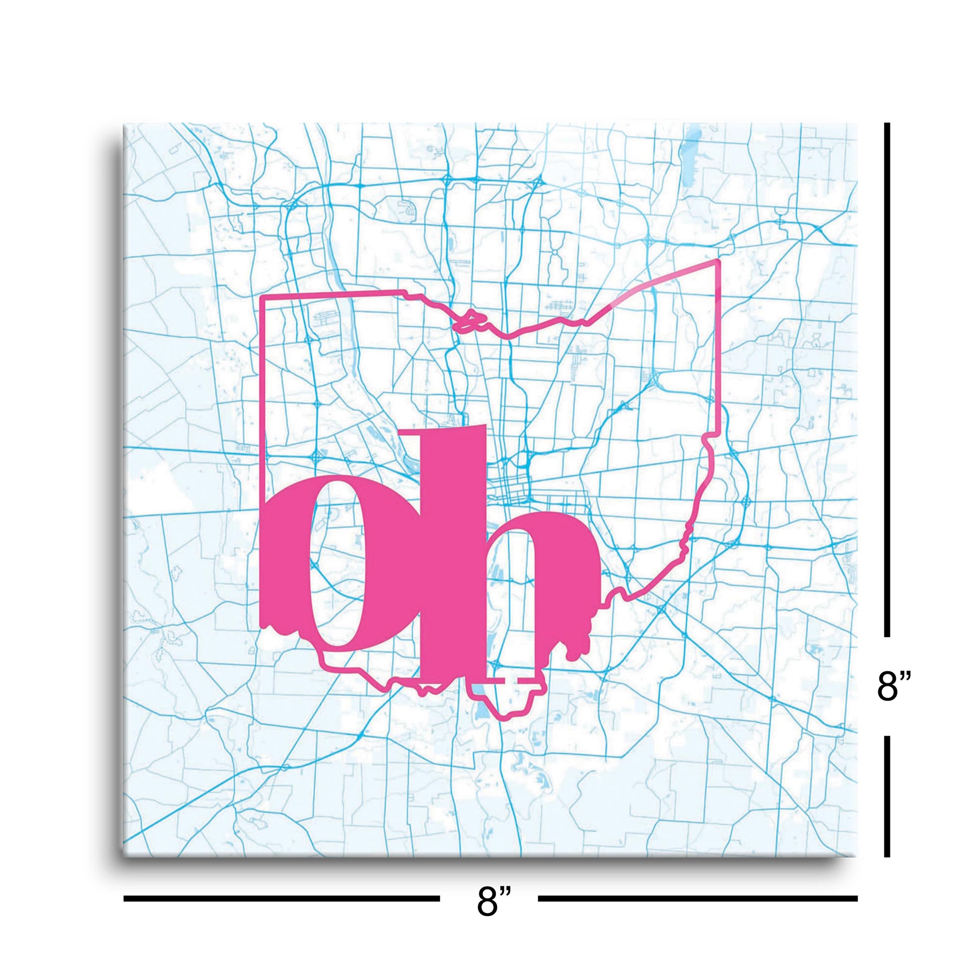 Bright Modern Abbreviated State Map Blue Ohio Columbus| Hi-Def Glass Art | Eaches | Min 2