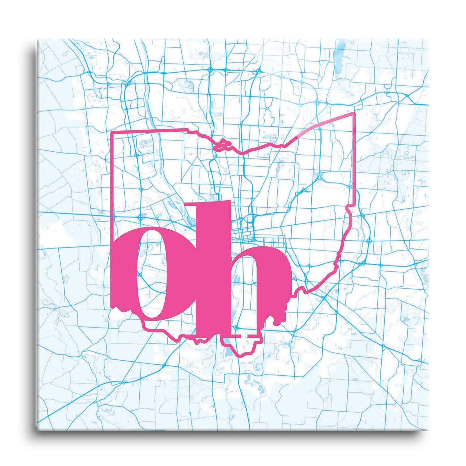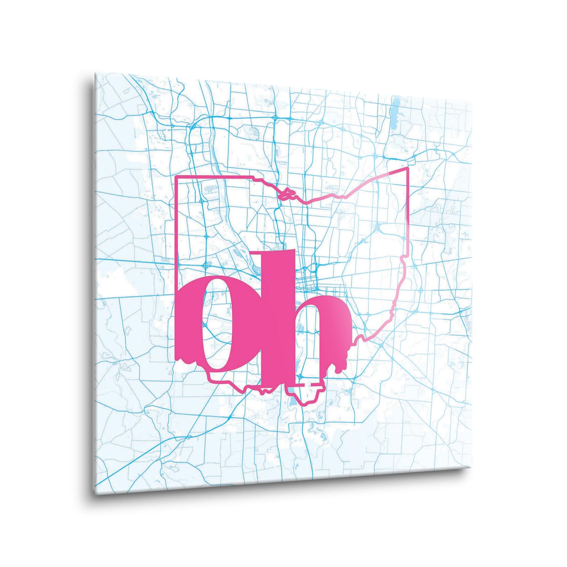 Bright Modern Abbreviated State Map Blue Ohio Columbus | Hi-Def Glass Art | Eaches | Min 1