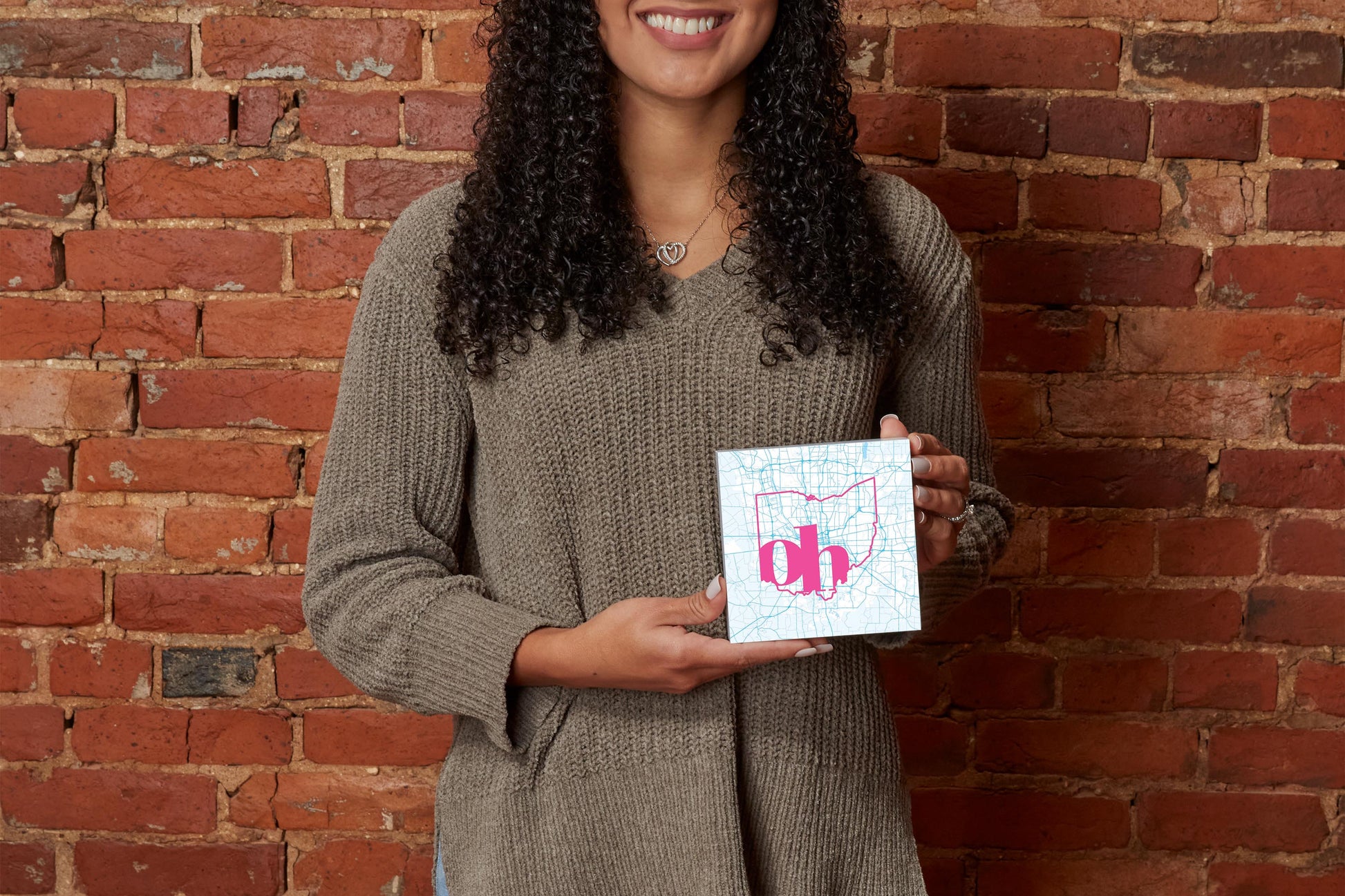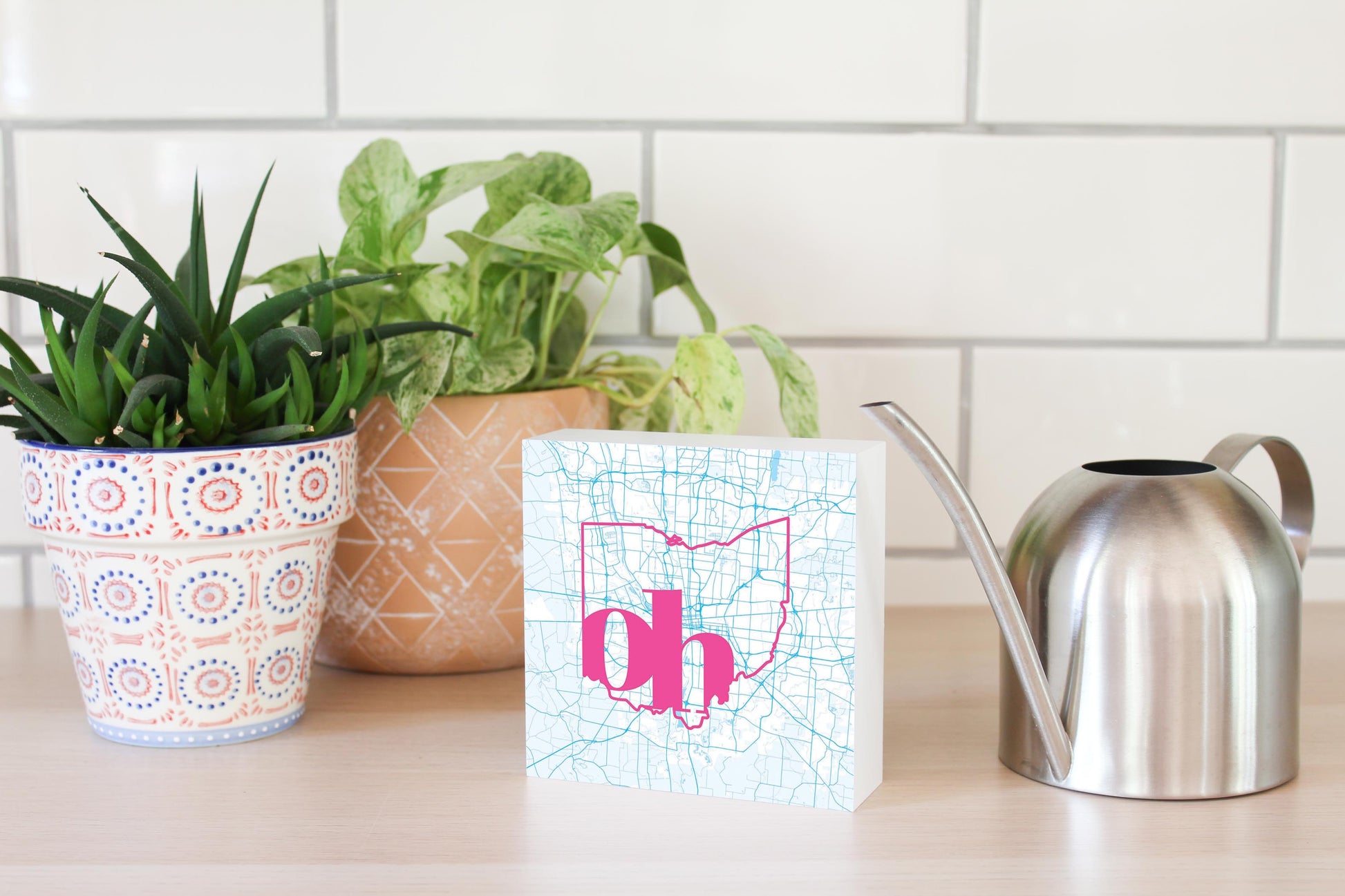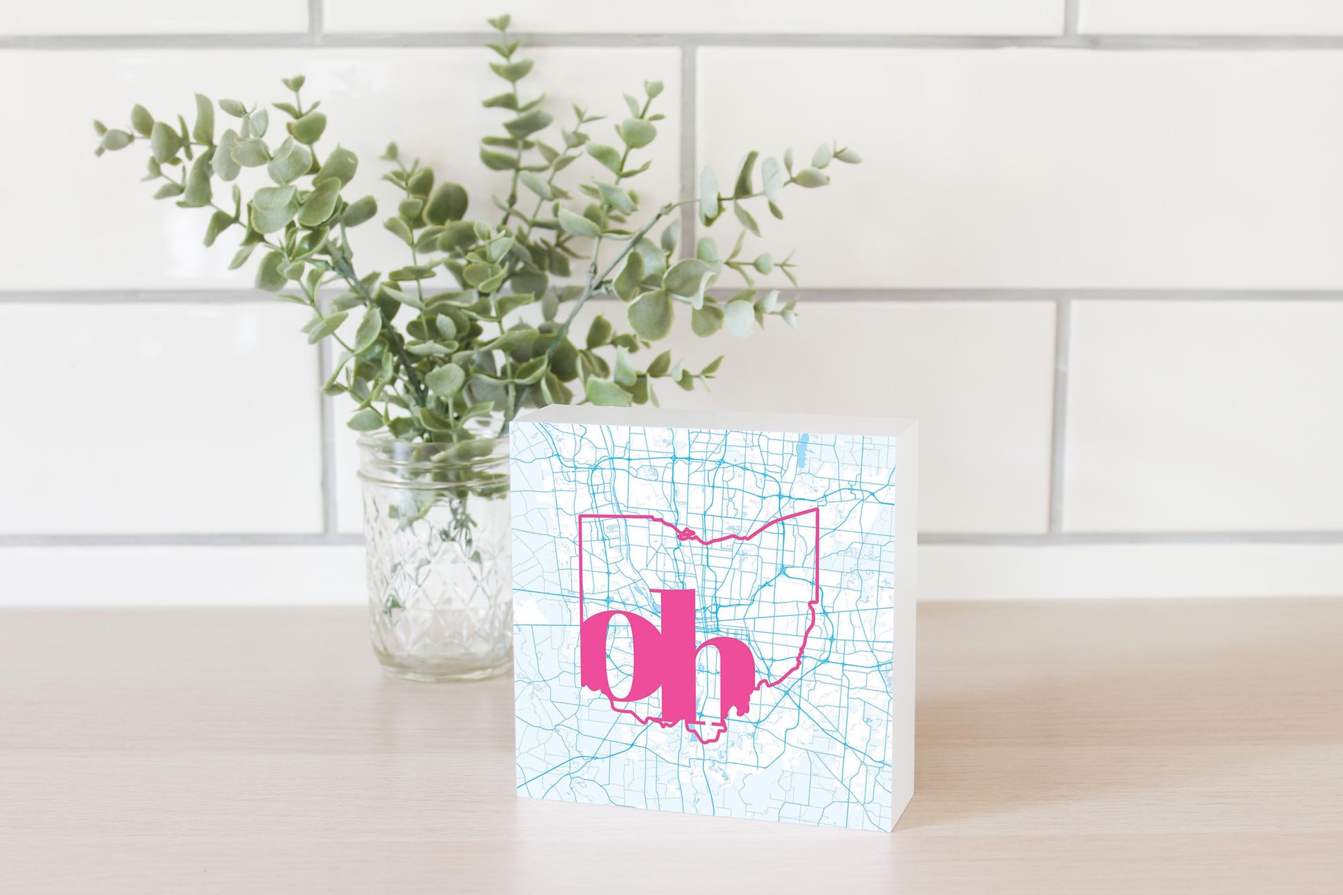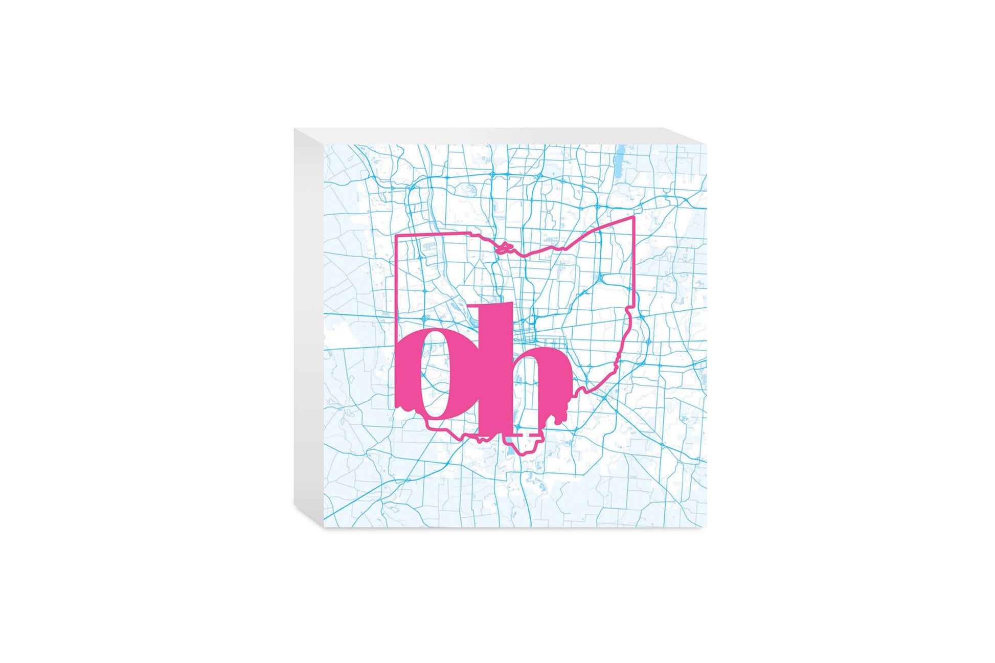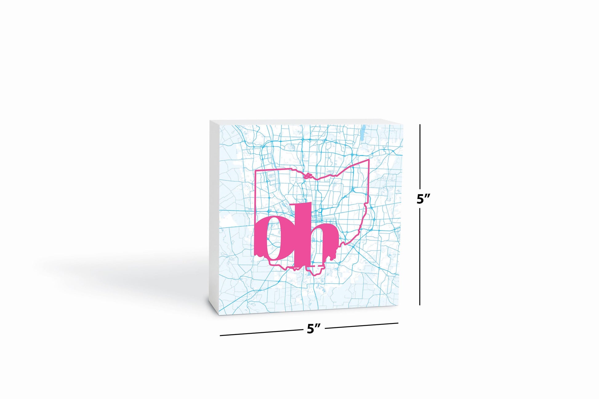 Bright Modern Abbreviated State Map Blue Ohio Columbus | Wood Block | Eaches | Min 4