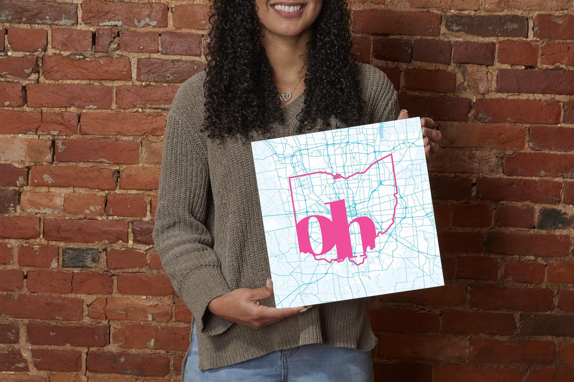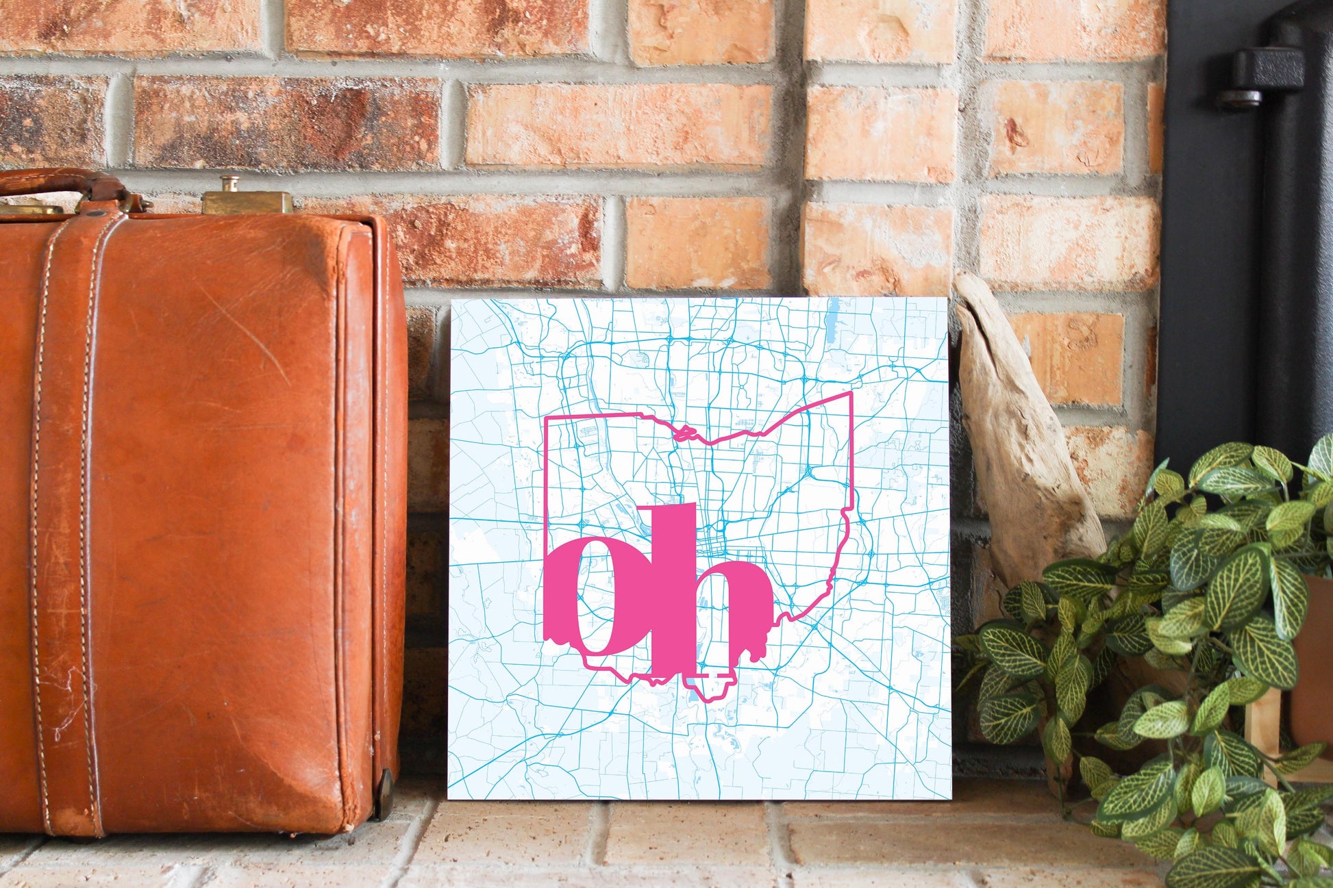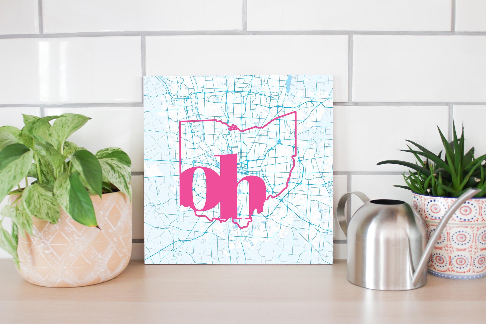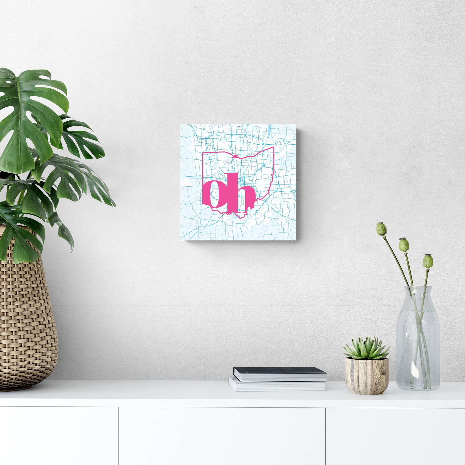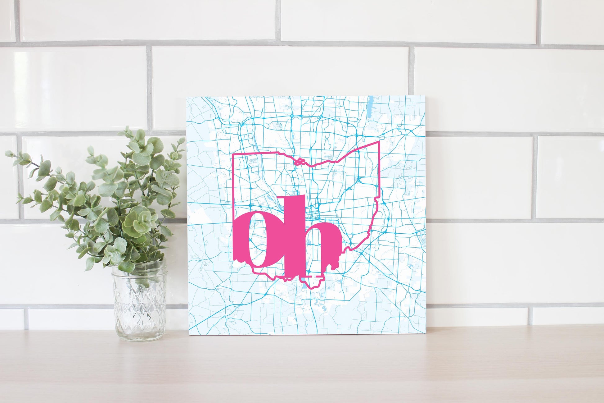 Bright Modern Abbreviated State Map Blue Ohio Columbus | Wood Sign | Eaches | Min 2