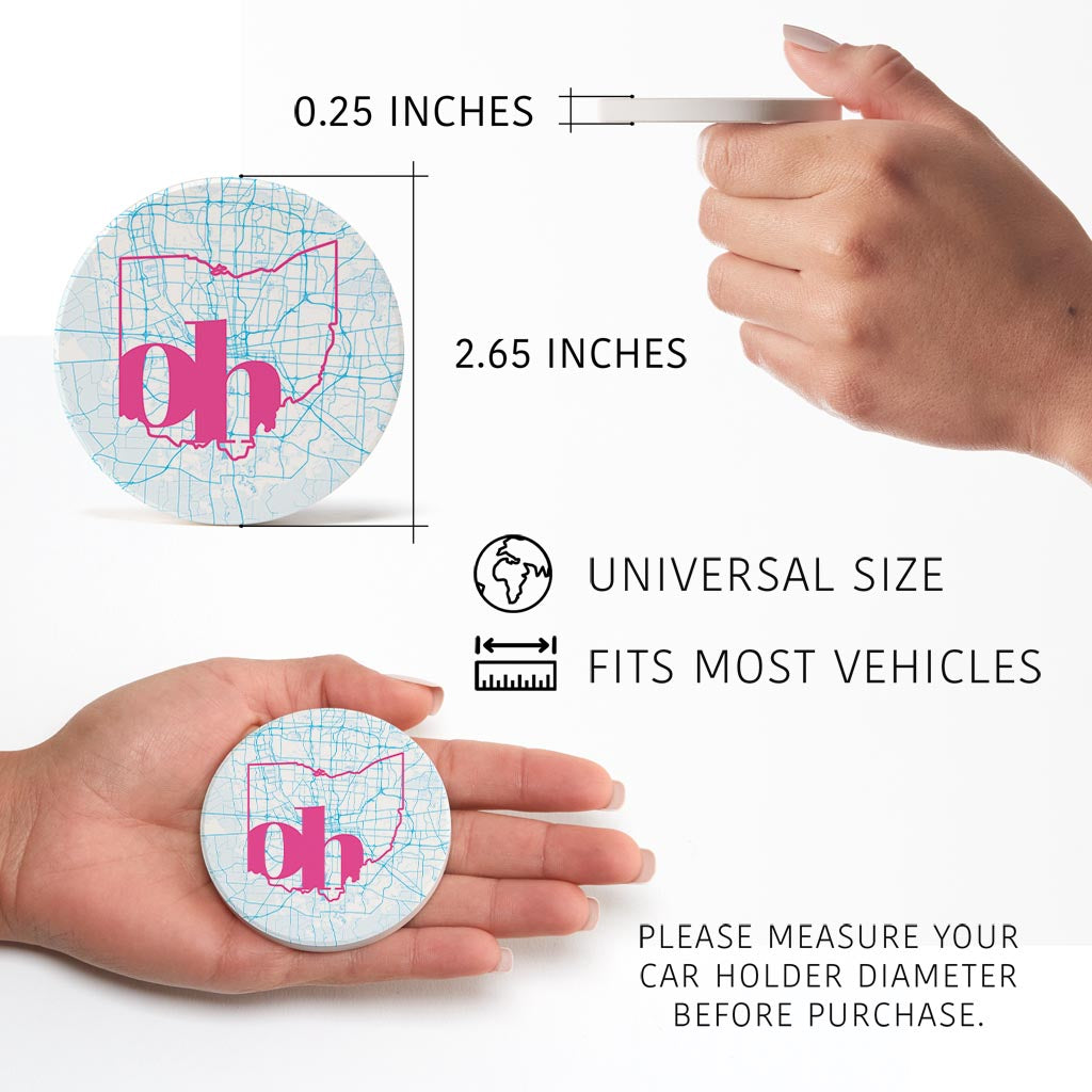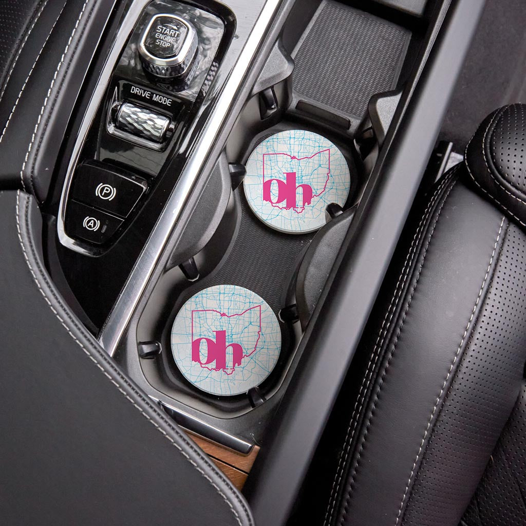 Bright Modern Abbreviated State Map Blue Ohio Columbus | Absorbent Car Coasters | Set of 2 | Min 4