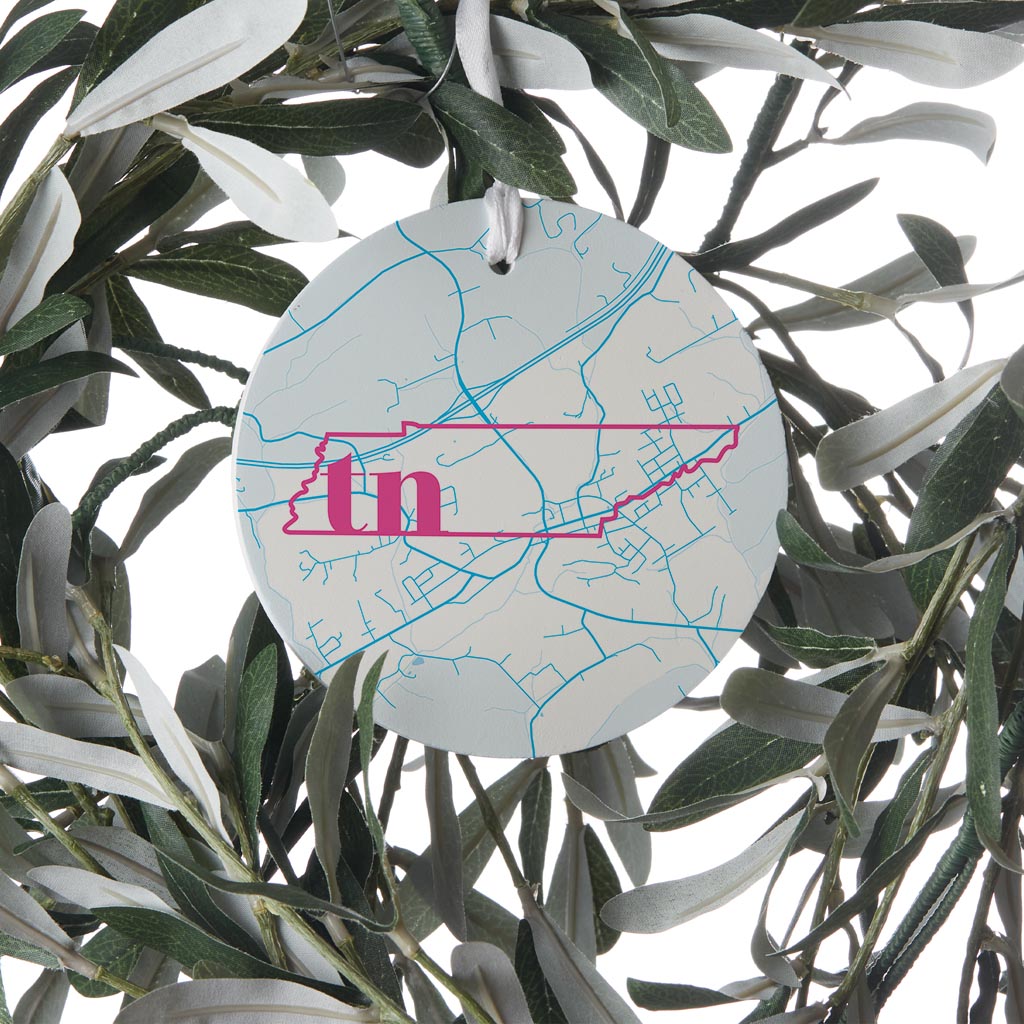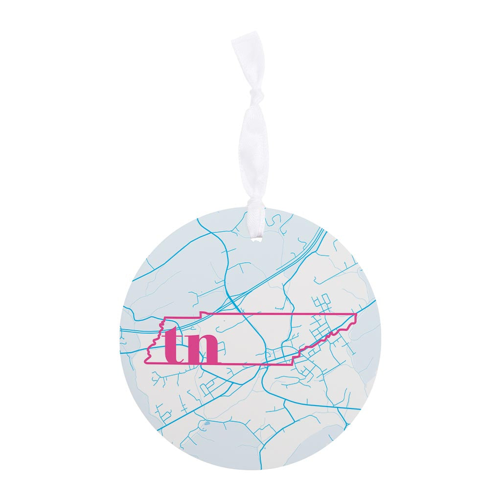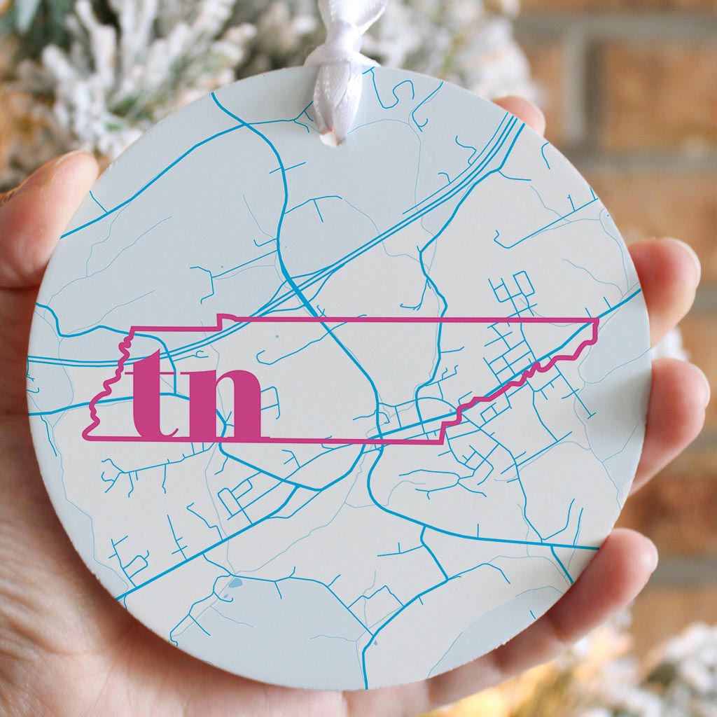 Bright Modern Abbreviated State Map Blue Tennessee Blountville| Wood Ornament | Eaches | Min 6