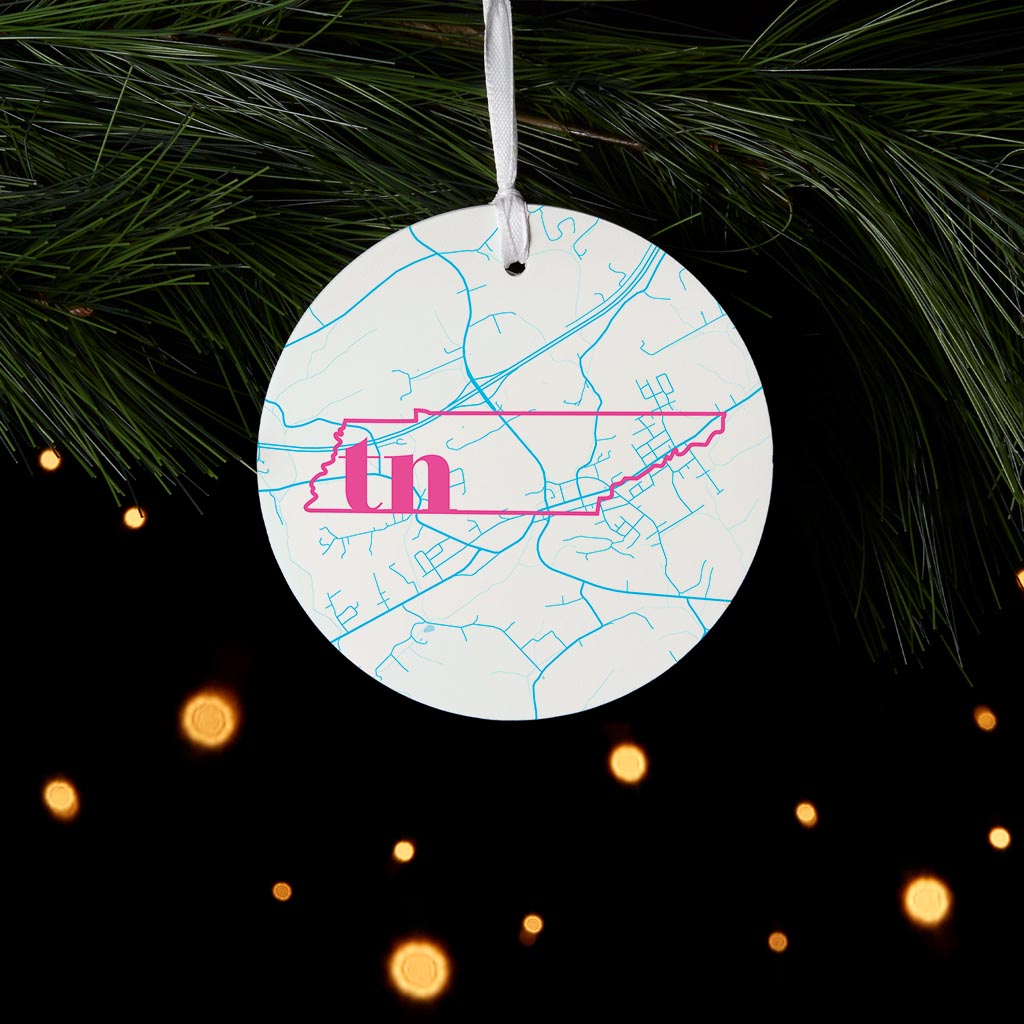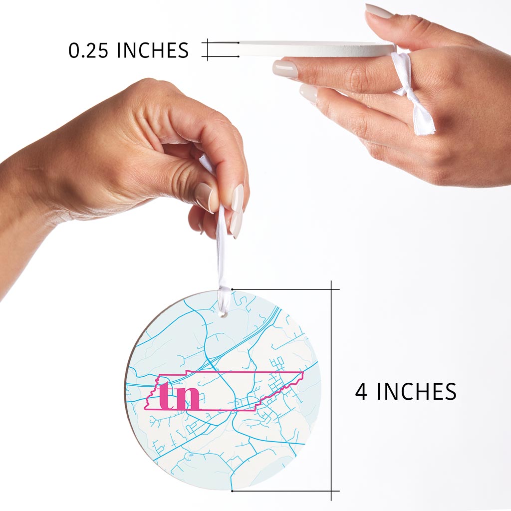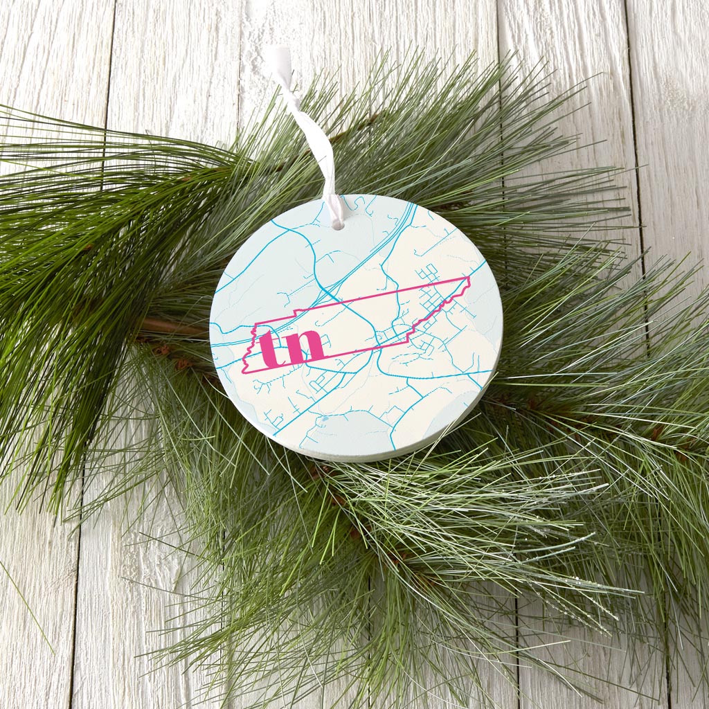Bright Modern Abbreviated State Map Blue Tennessee Blountville| Wood Ornament | Eaches | Min 6