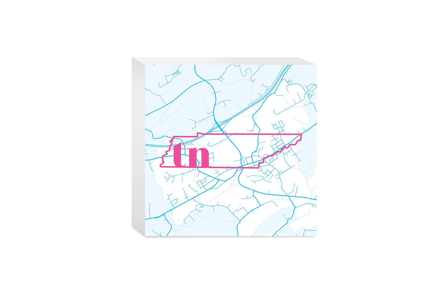 Bright Modern Abbreviated State Map Blue Tennessee Blountville | Wood Block | Eaches | Min 4
