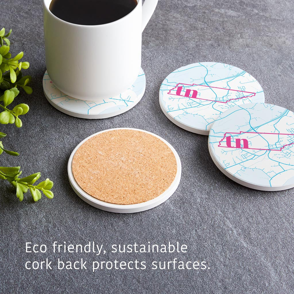 Bright Modern Abbreviated State Map Blue Tennessee Blountville | Absorbent Coasters | Set of 4 | Min 2