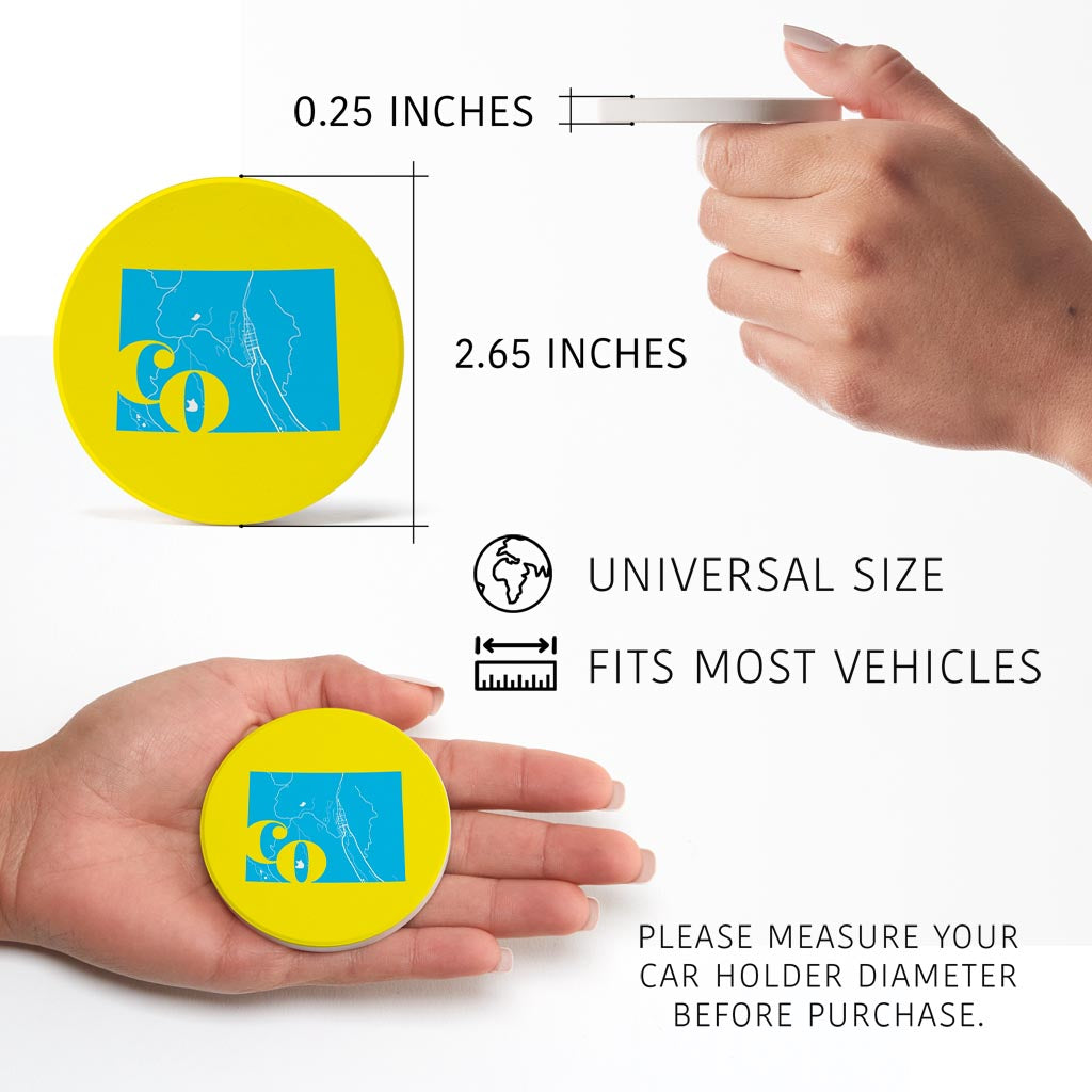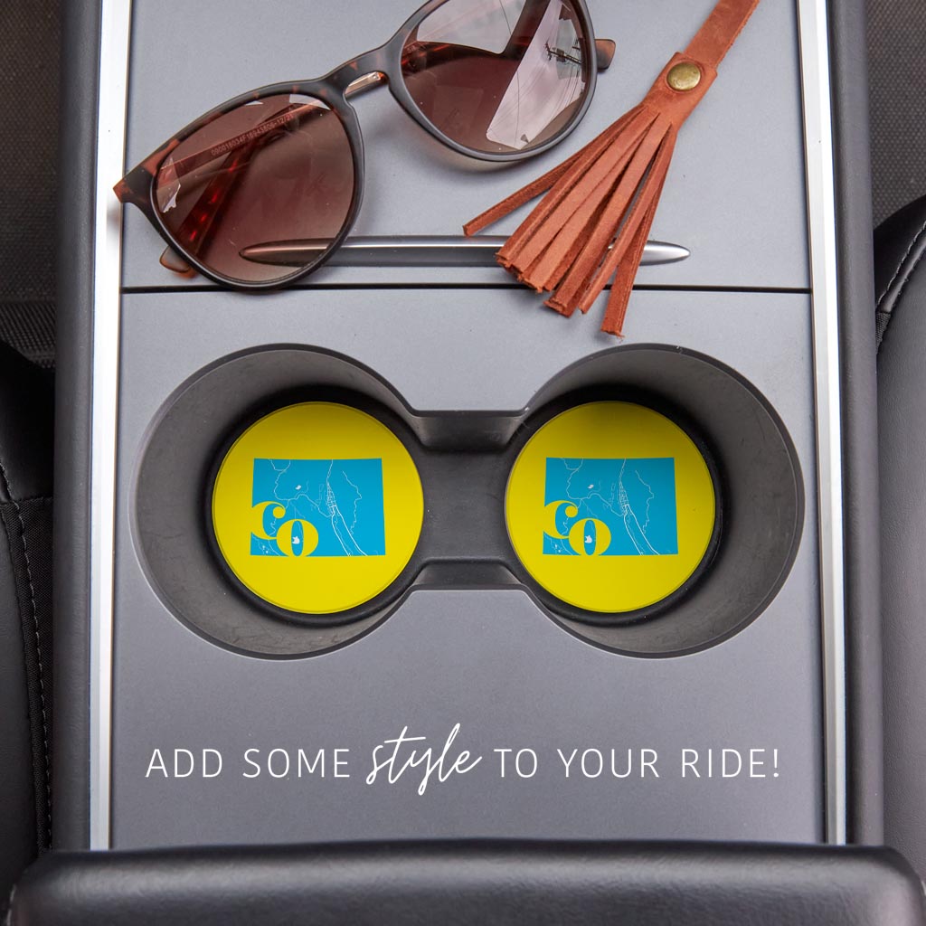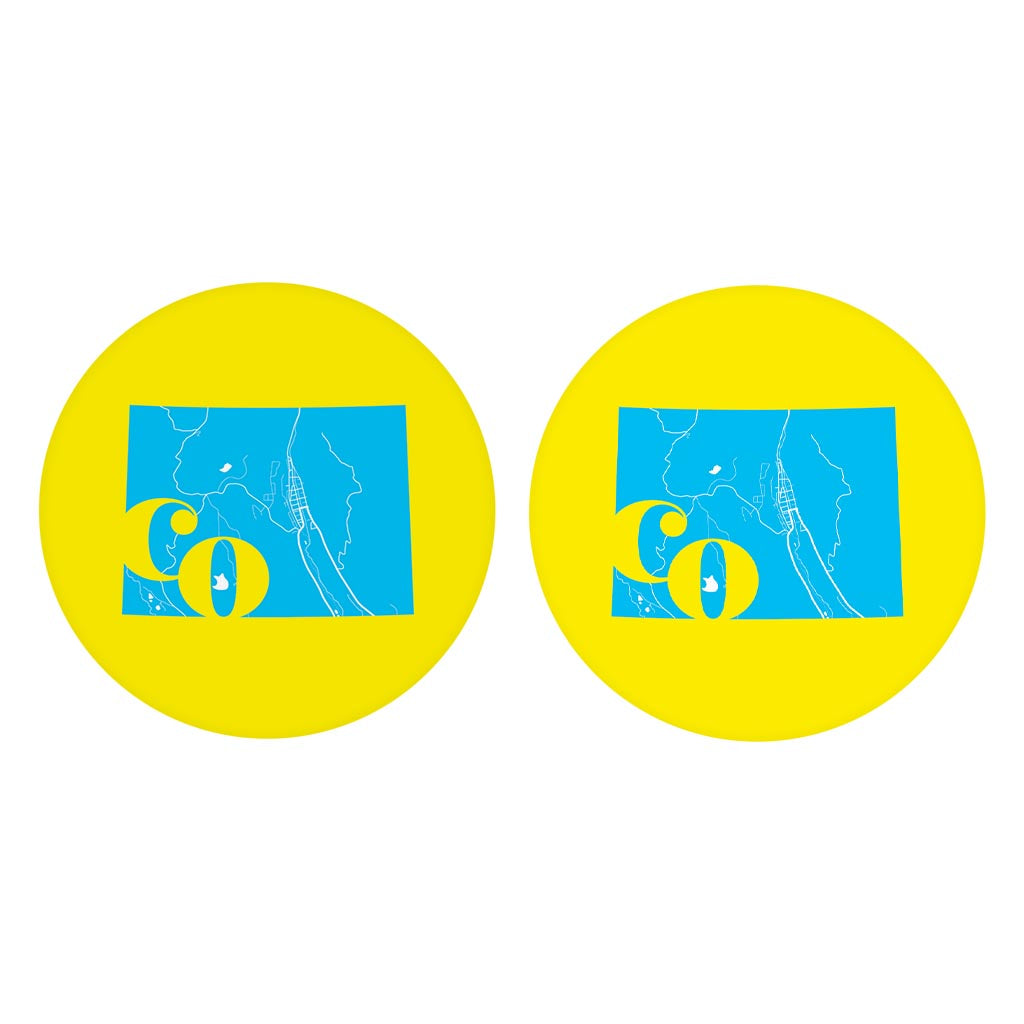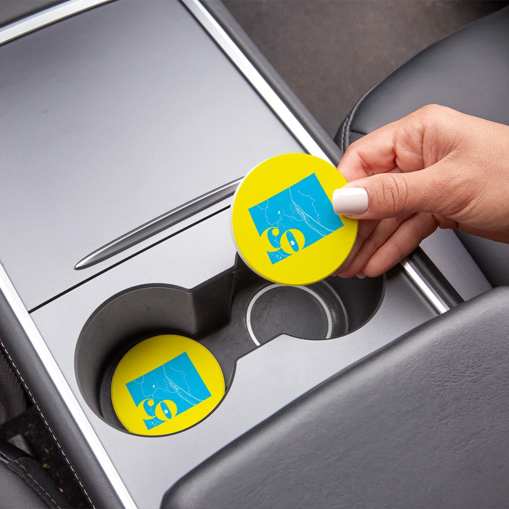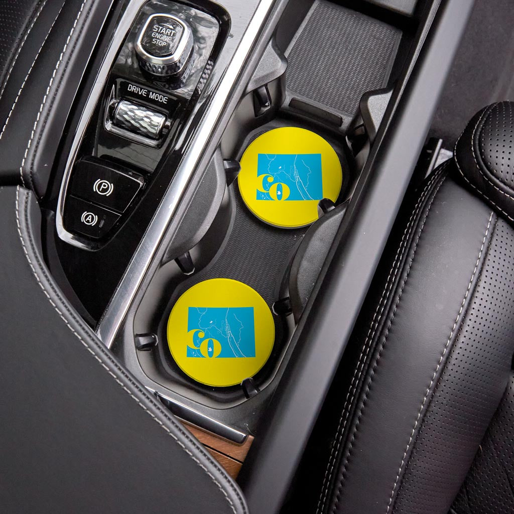 Bright Modern Abbreviated State Yellow Colorado| Absorbent Car Coasters | Set of 2 | Min 4