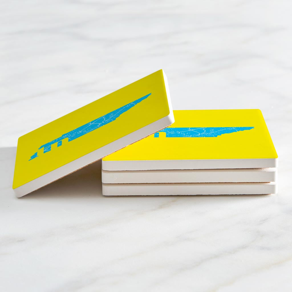 Bright Modern Abbreviated State Yellow Florida Blountville | Absorbent Coasters | Set of 4 | Min 2