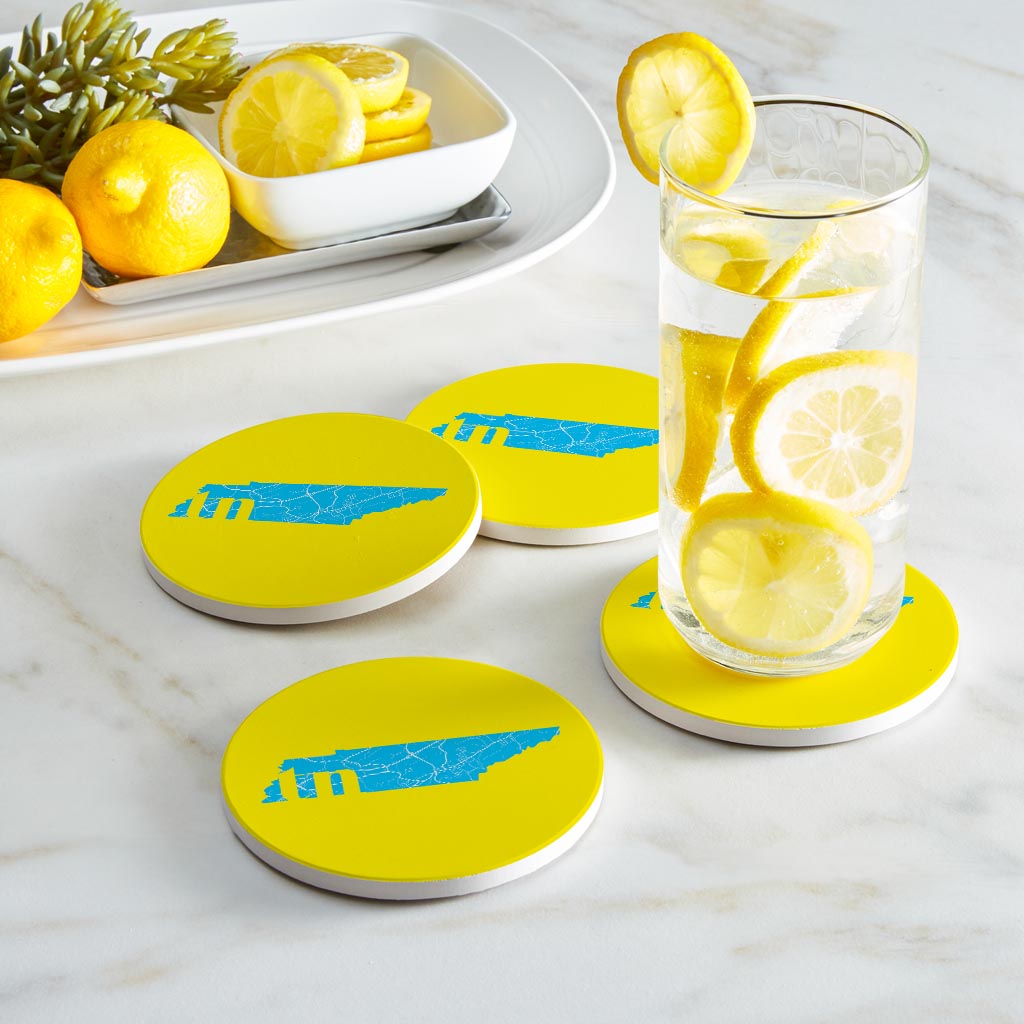Bright Modern Abbreviated State Yellow Florida Blountville | Absorbent Coasters | Set of 4 | Min 2