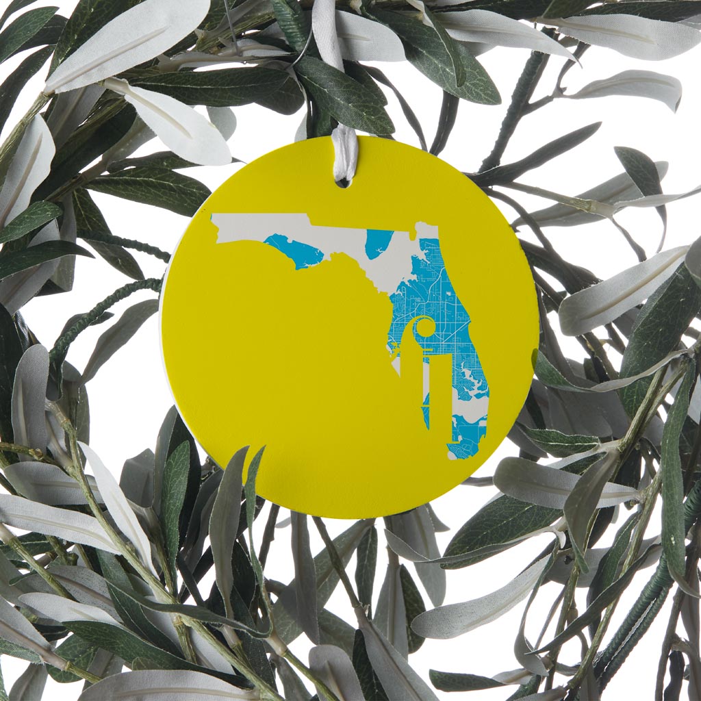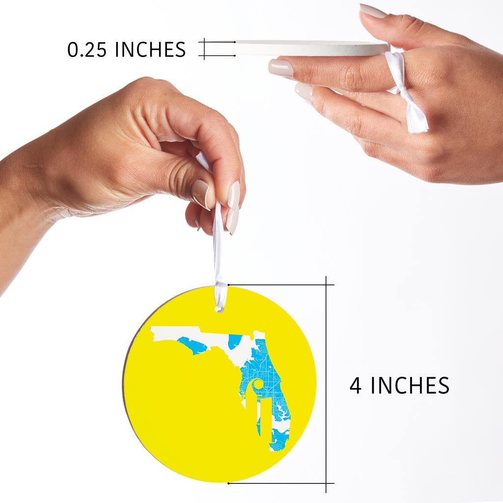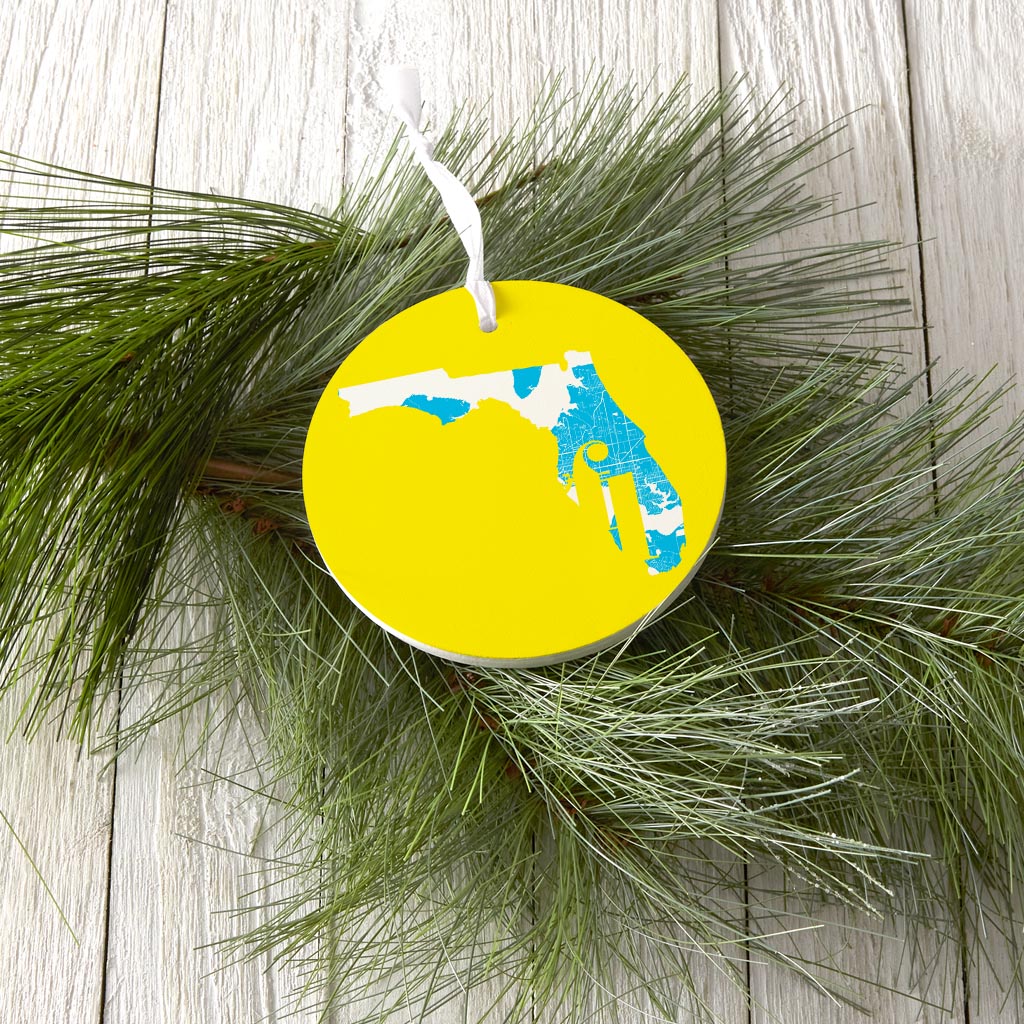 Bright Modern Abbreviated State Yellow Florida Panama| Wood Ornament | Eaches | Min 6