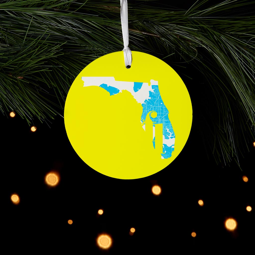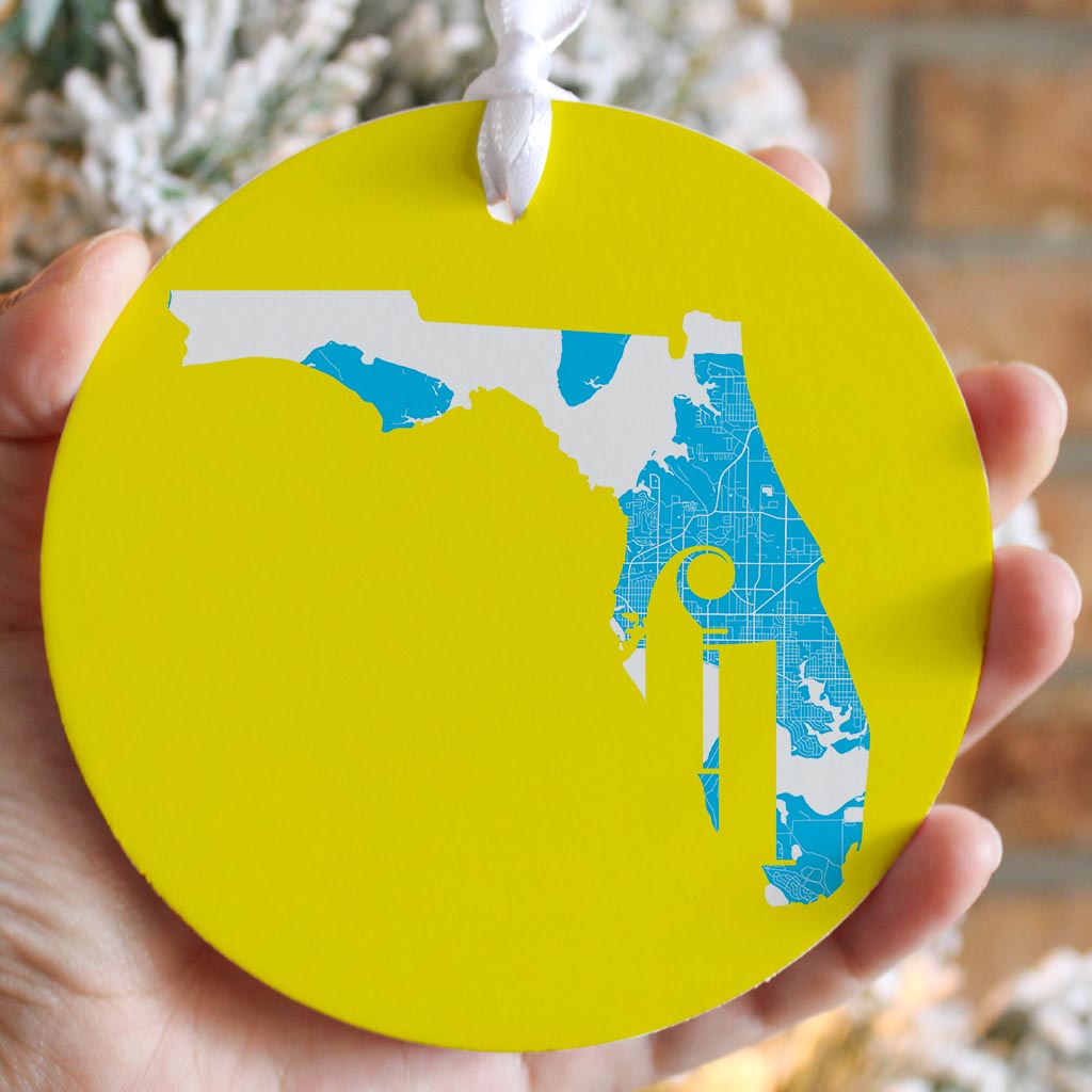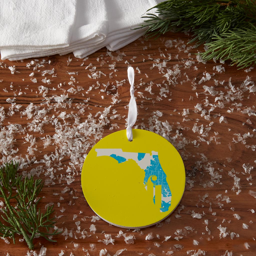 Bright Modern Abbreviated State Yellow Florida Panama| Wood Ornament | Eaches | Min 6