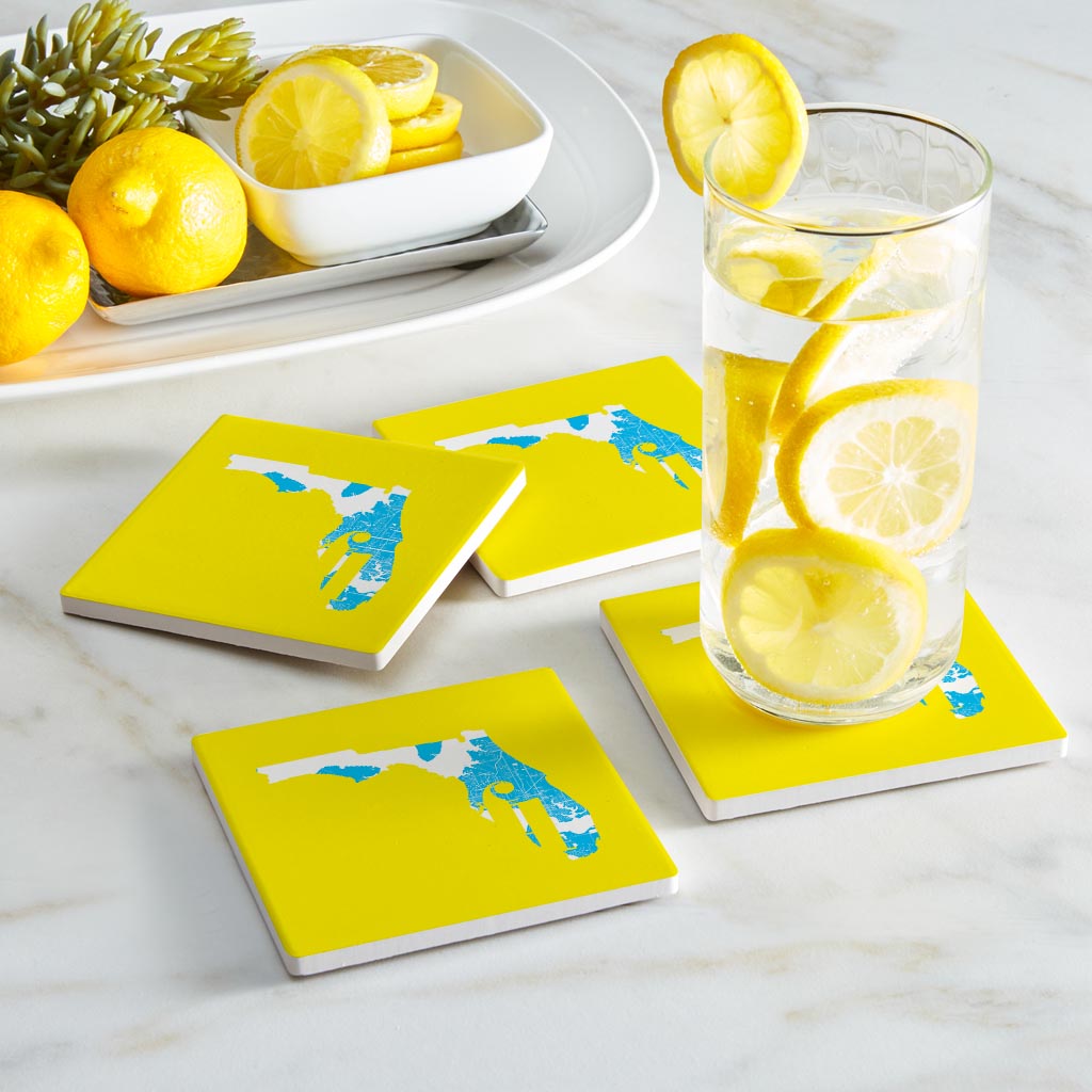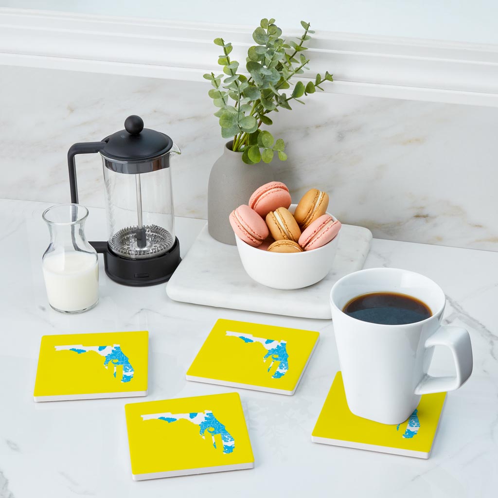 Bright Modern Abbreviated State Yellow Florida Panama | Absorbent Coasters | Set of 4 | Min 2