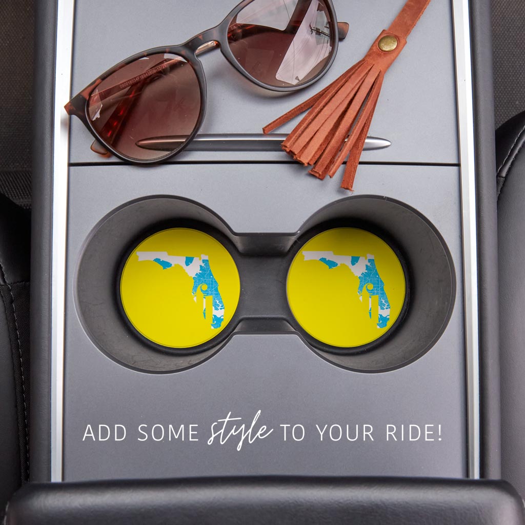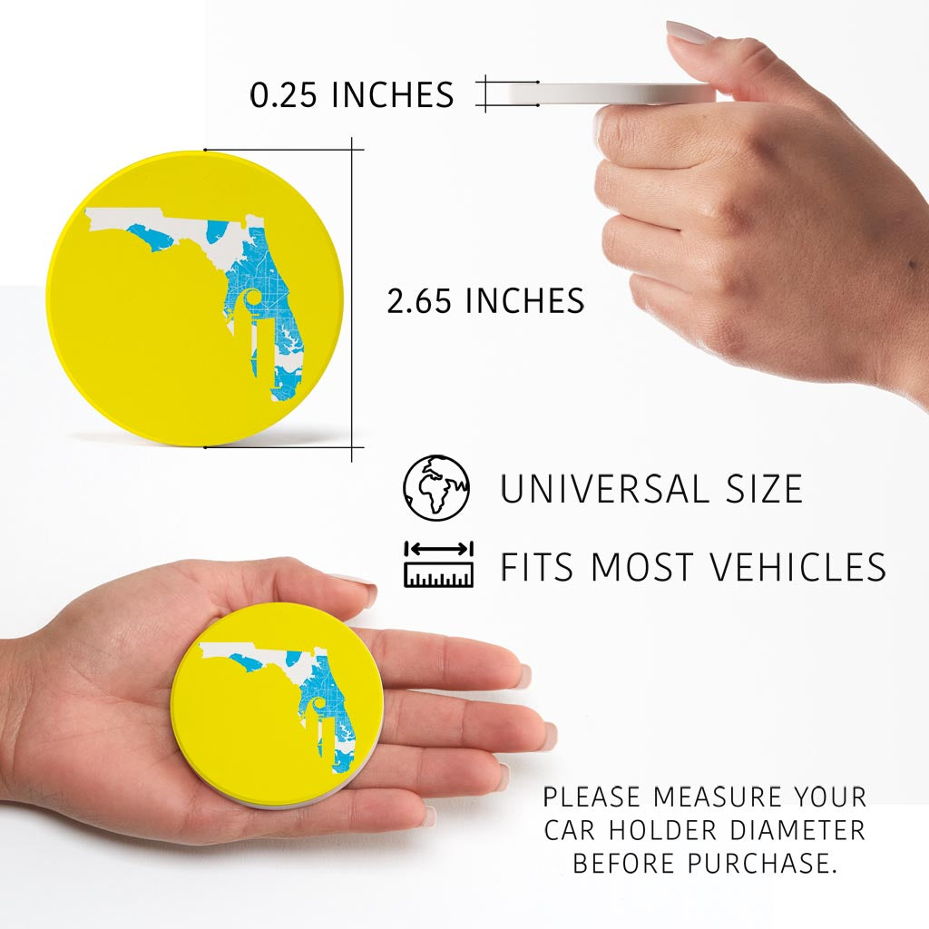 Bright Modern Abbreviated State Yellow Florida Panama | Absorbent Car Coasters | Set of 2 | Min 4
