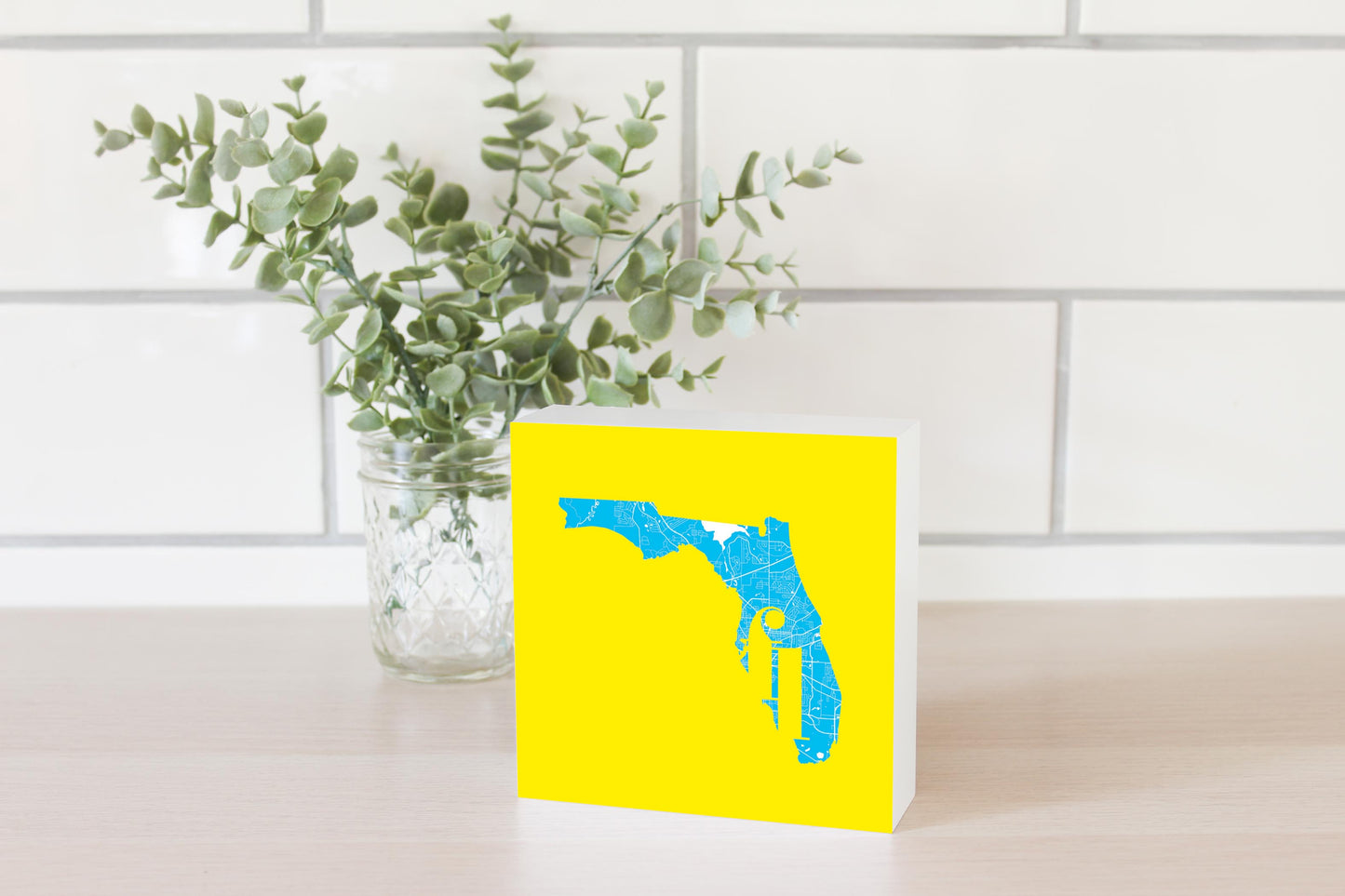 Bright Modern Abbreviated State Yellow Florida Tallahassee | Wood Block | Eaches | Min 4