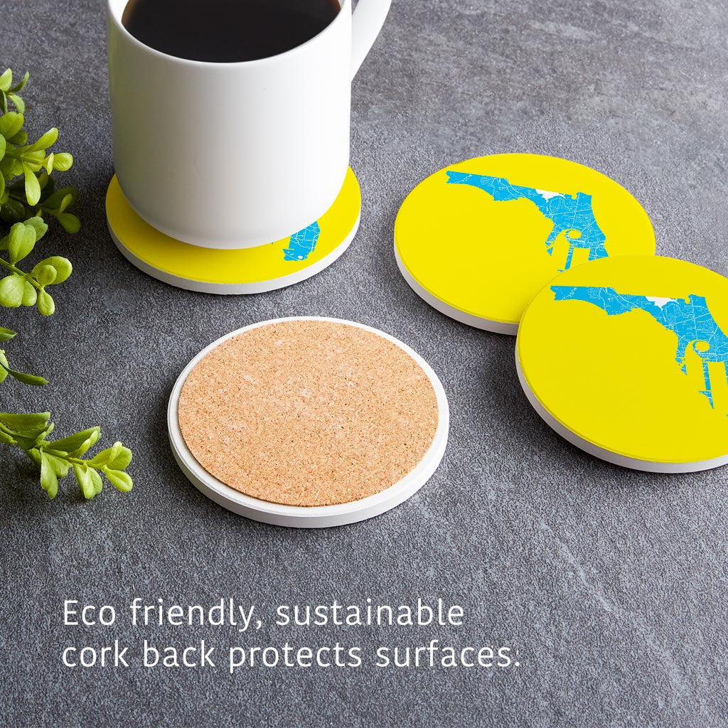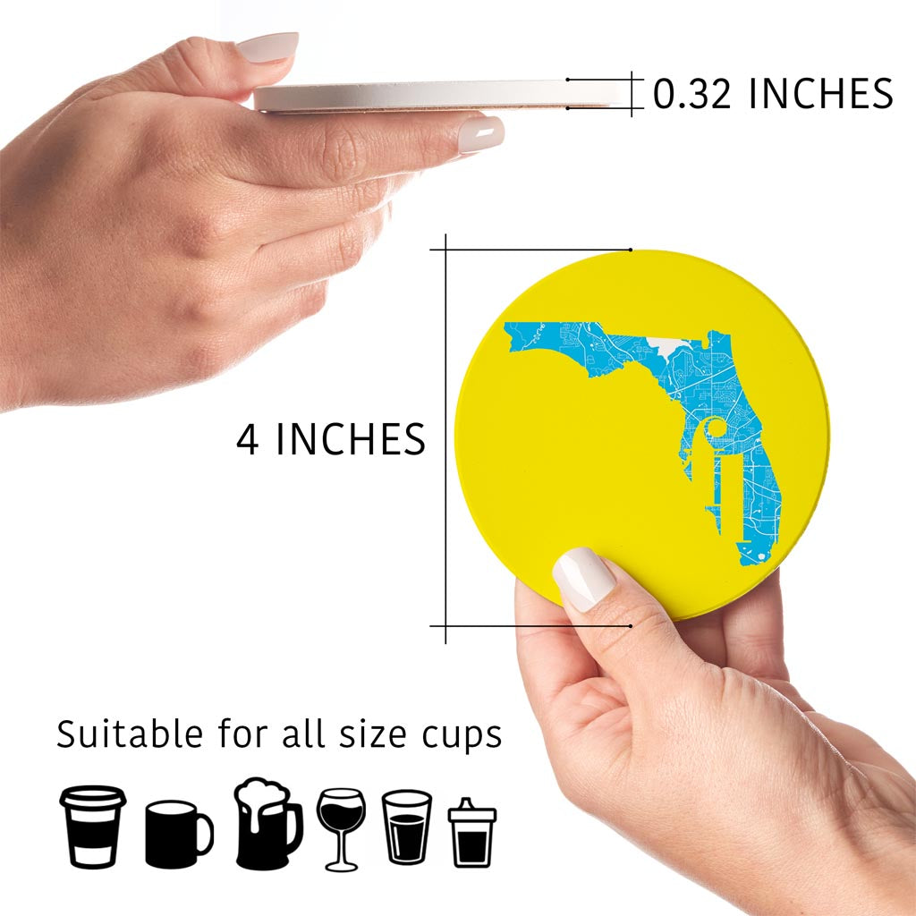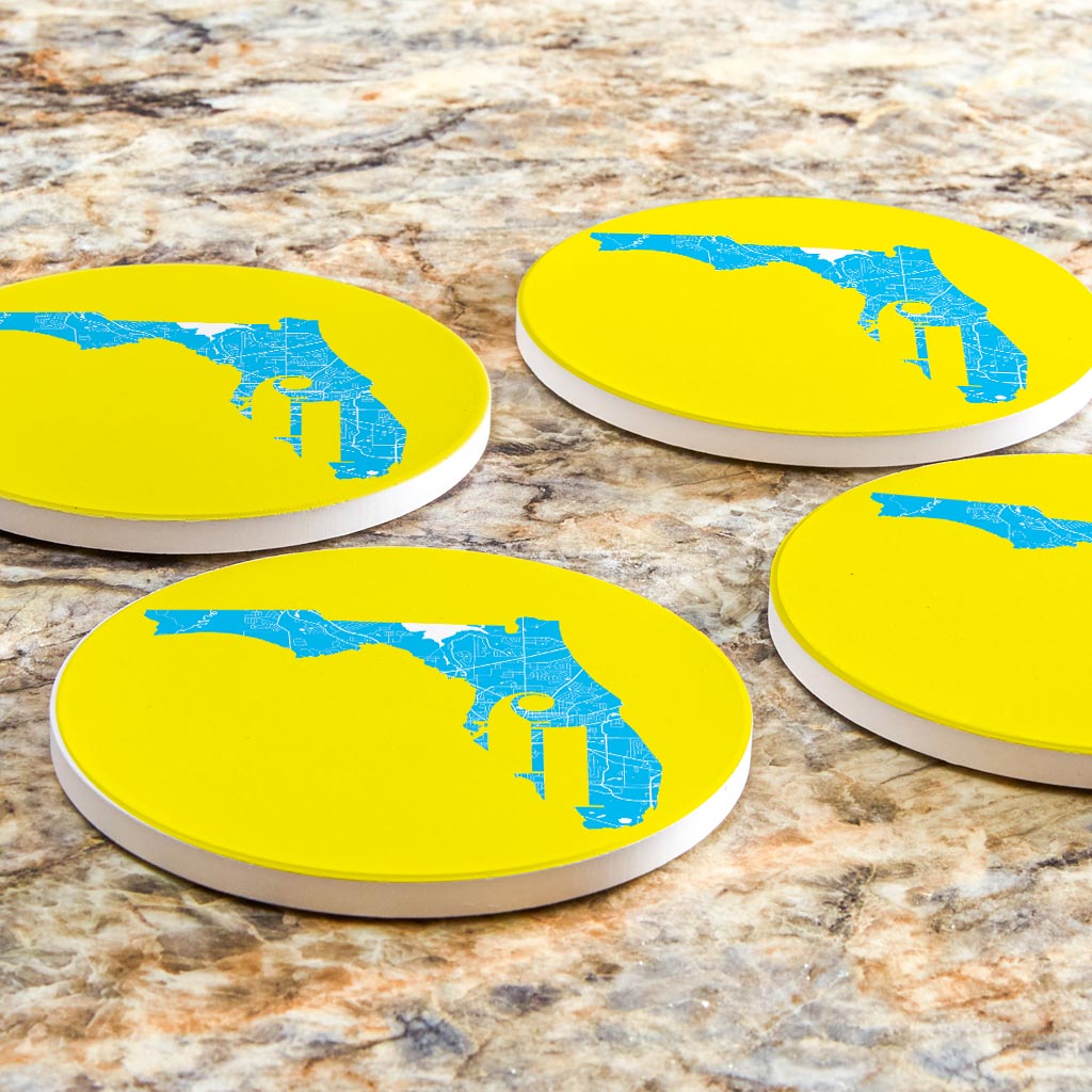 Bright Modern Abbreviated State Yellow Florida Tallahassee | Absorbent Coasters | Set of 4 | Min 2