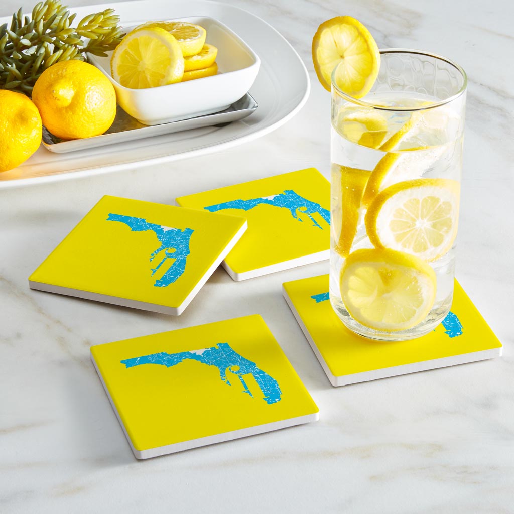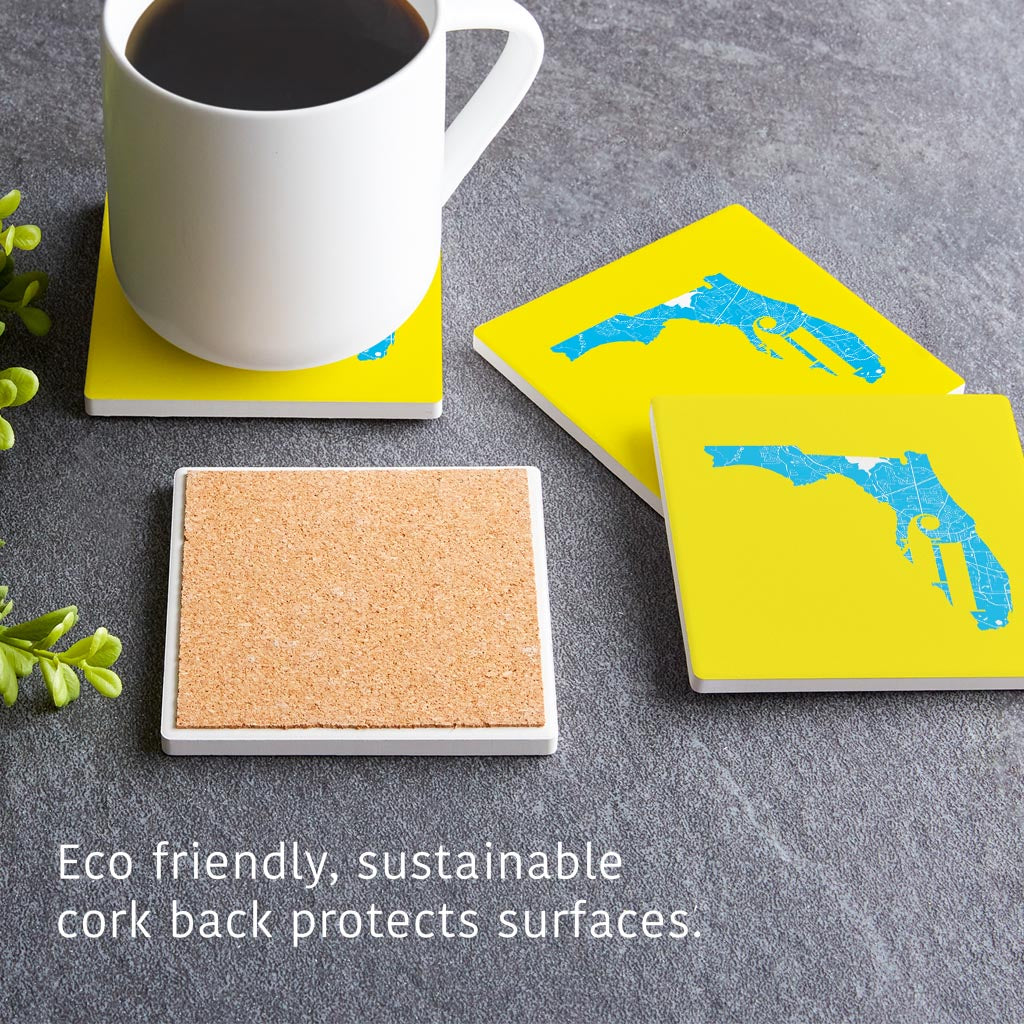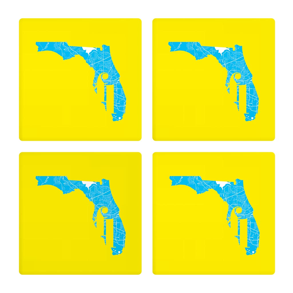 Bright Modern Abbreviated State Yellow Florida Tallahassee | Absorbent Coasters | Set of 4 | Min 2
