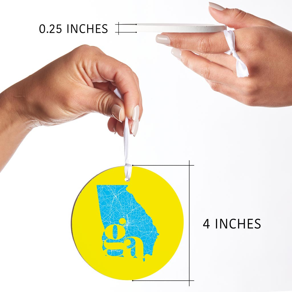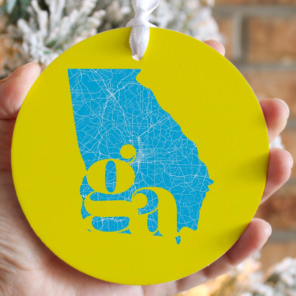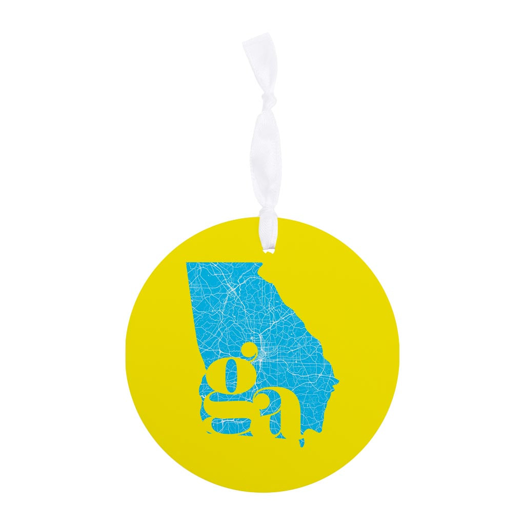 Bright Modern Abbreviated State Yellow Georgia | Wood Ornament | Eaches | Min 6