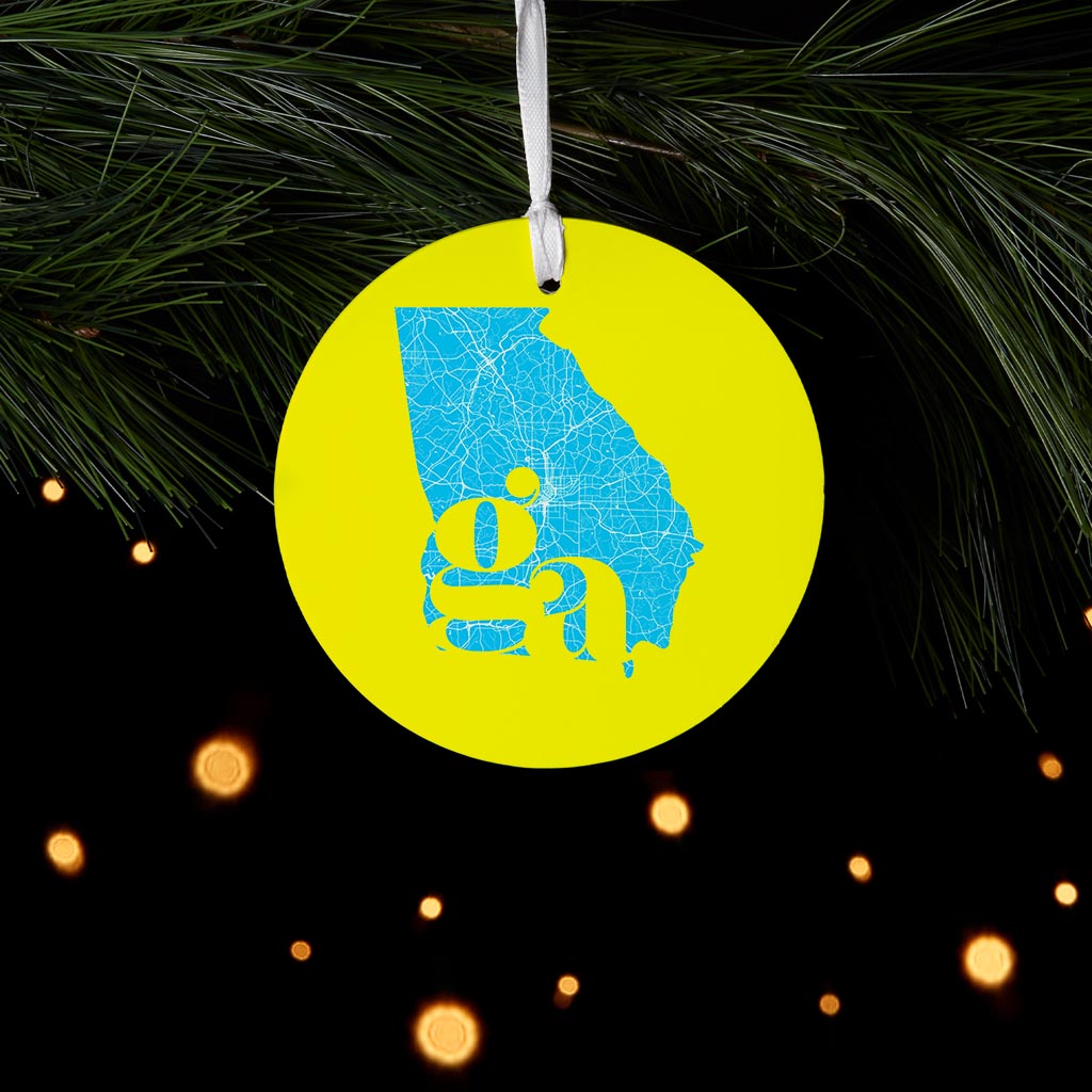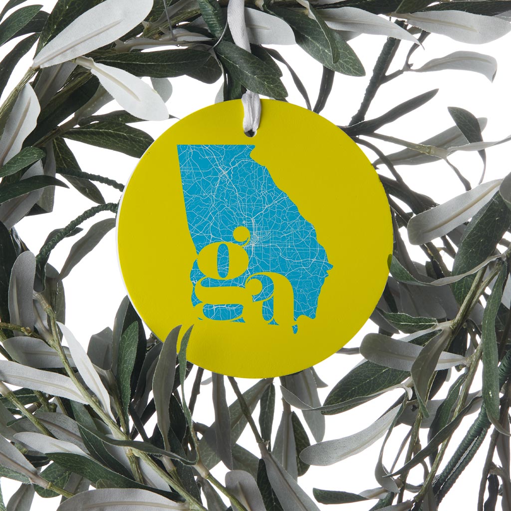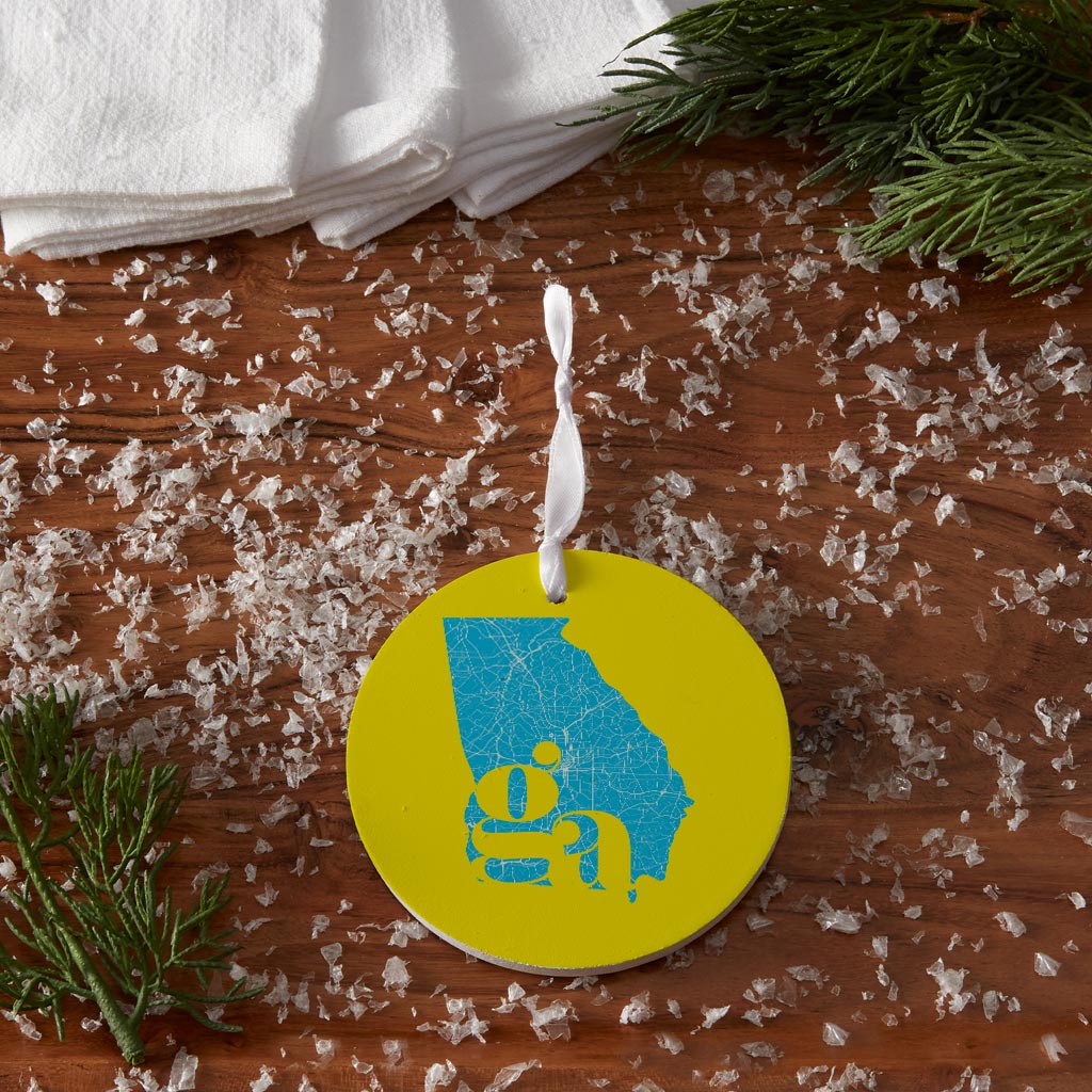 Bright Modern Abbreviated State Yellow Georgia | Wood Ornament | Eaches | Min 6