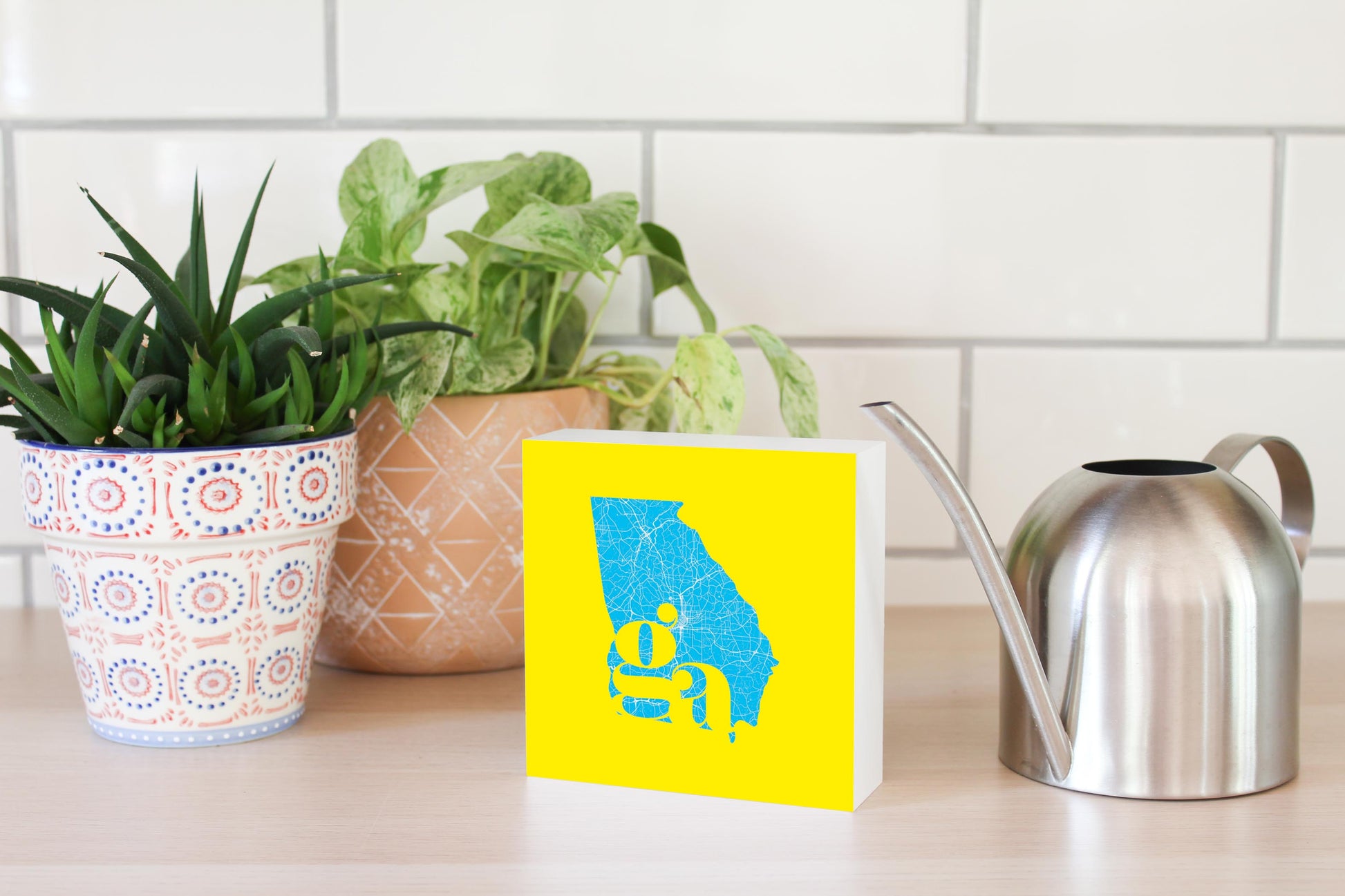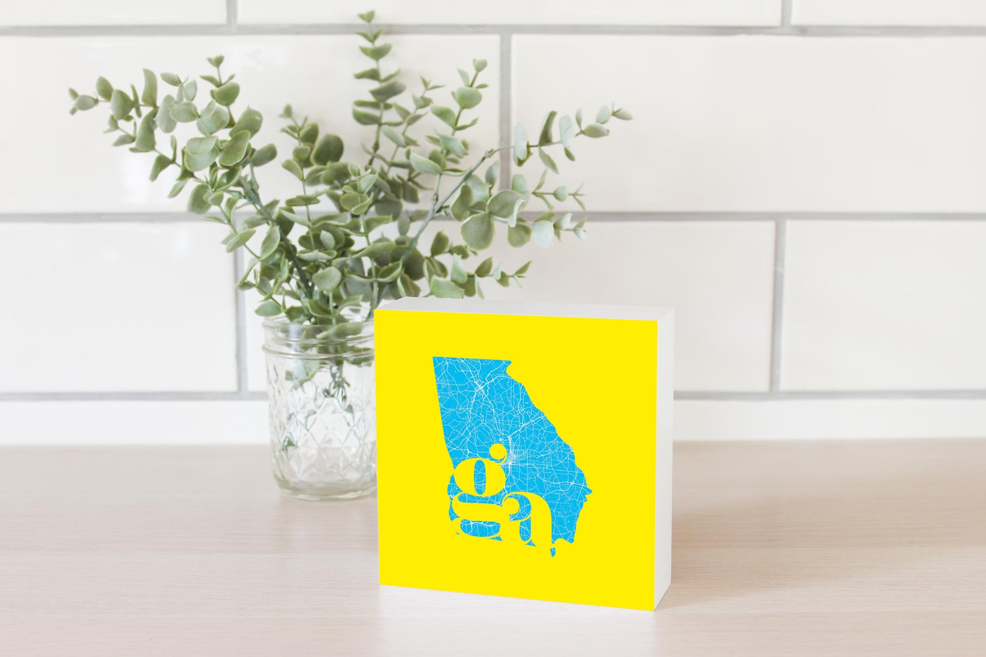 Bright Modern Abbreviated State Yellow Georgia | Wood Block | Eaches | Min 4