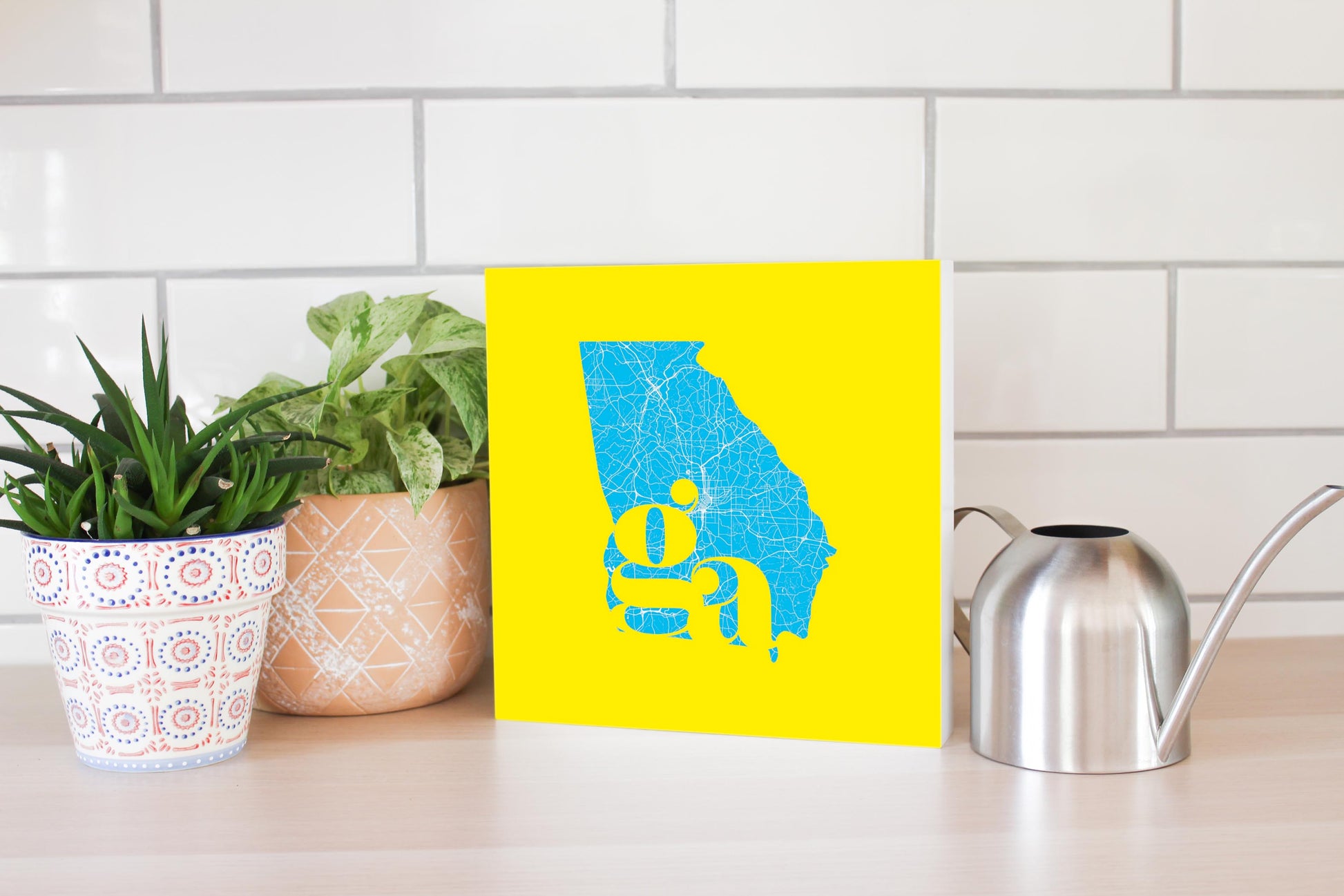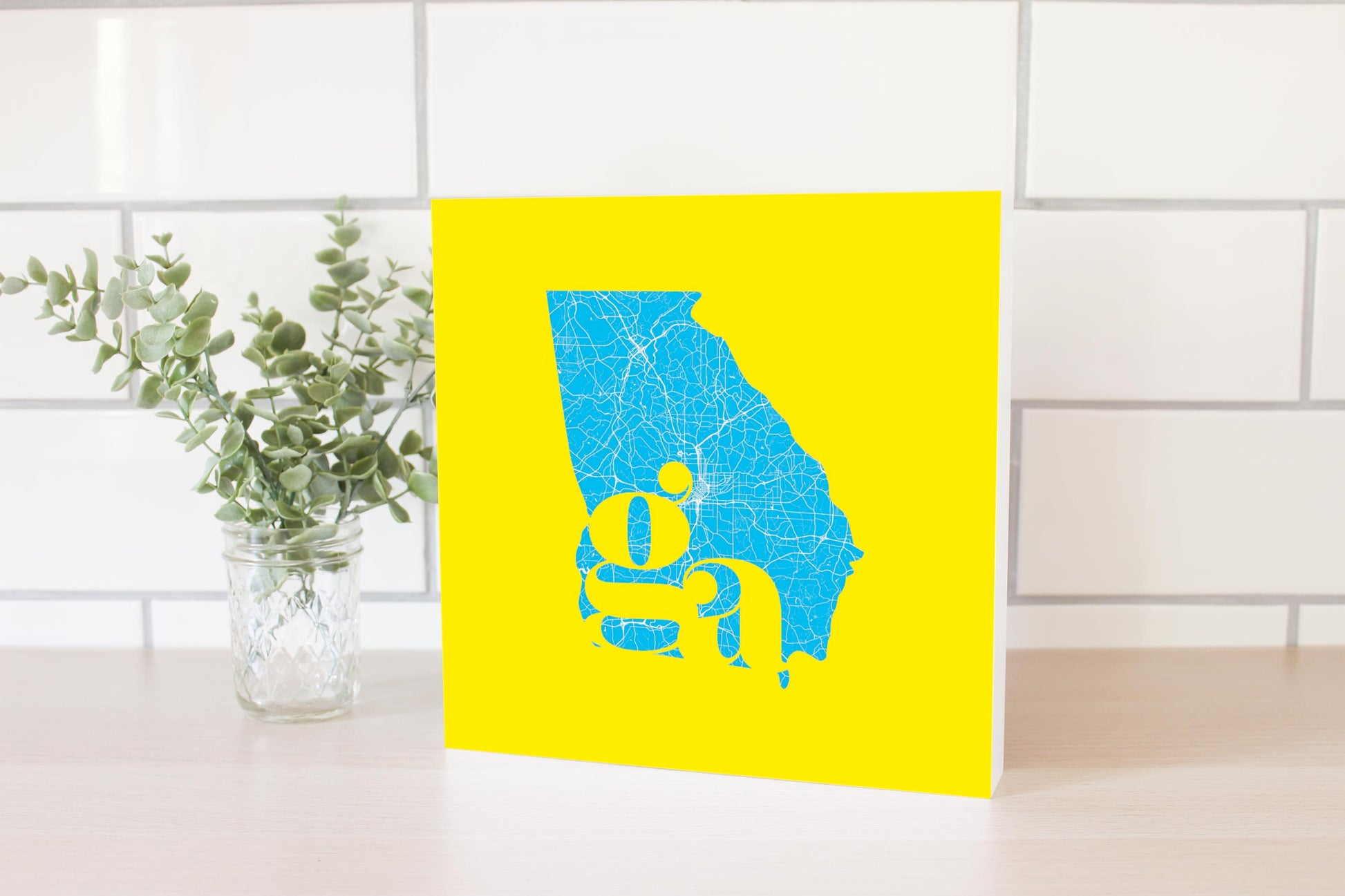 Bright Modern Abbreviated State Yellow Georgia | Wood Block | Eaches | Min 2