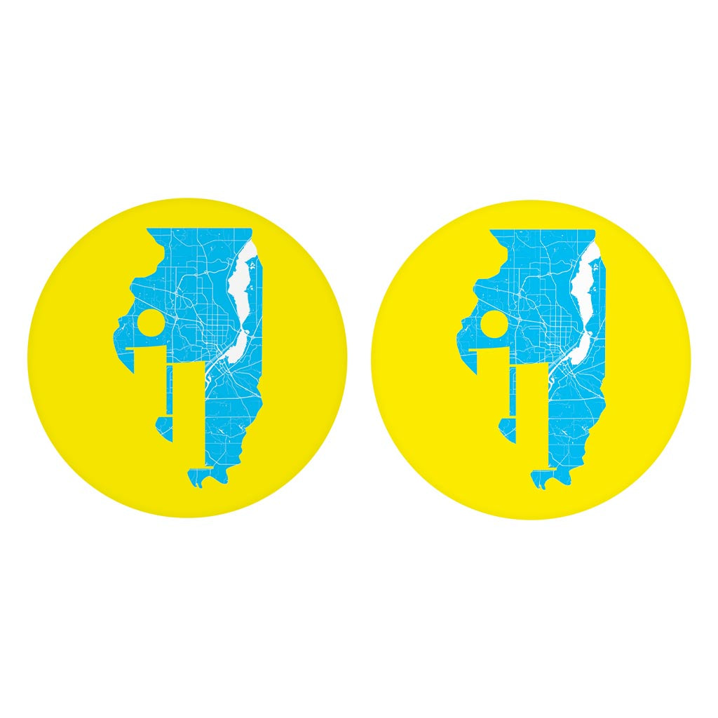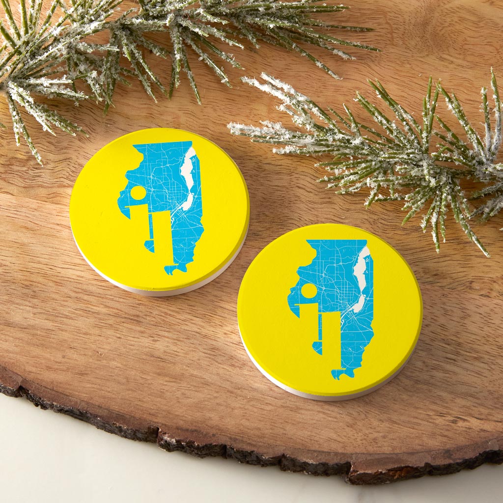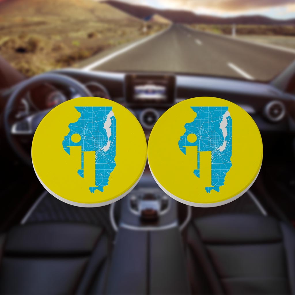 Bright Modern Abbreviated State Yellow Illinois| Absorbent Car Coasters | Set of 2 | Min 4