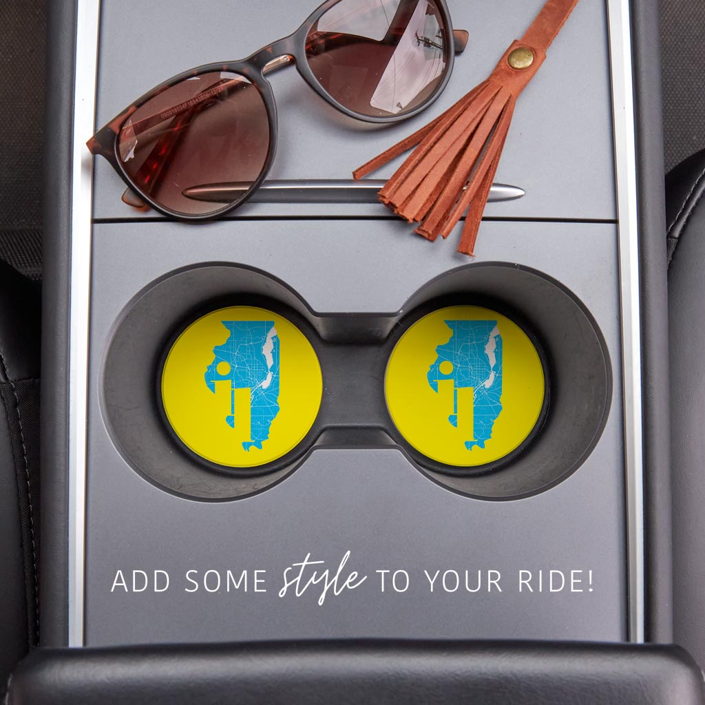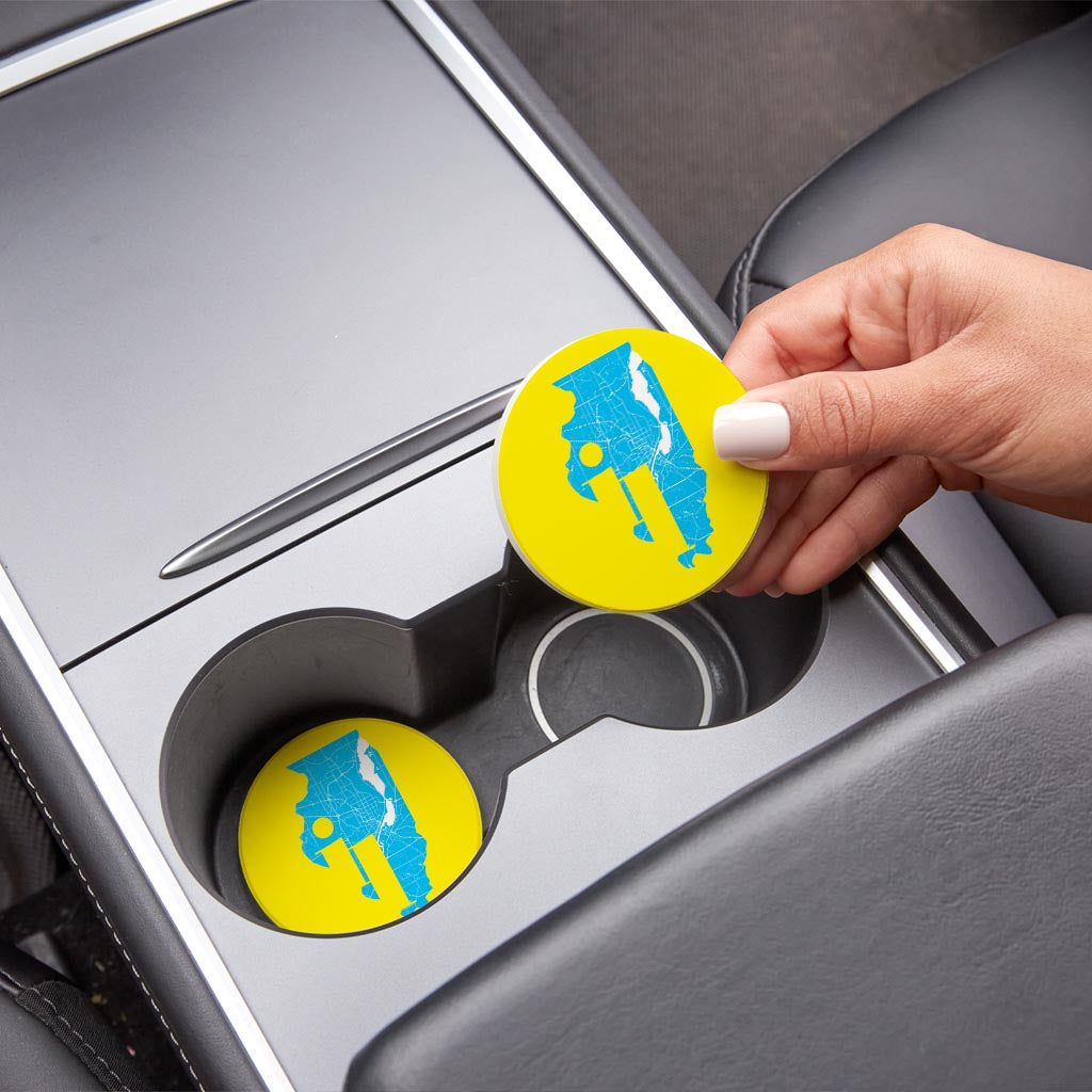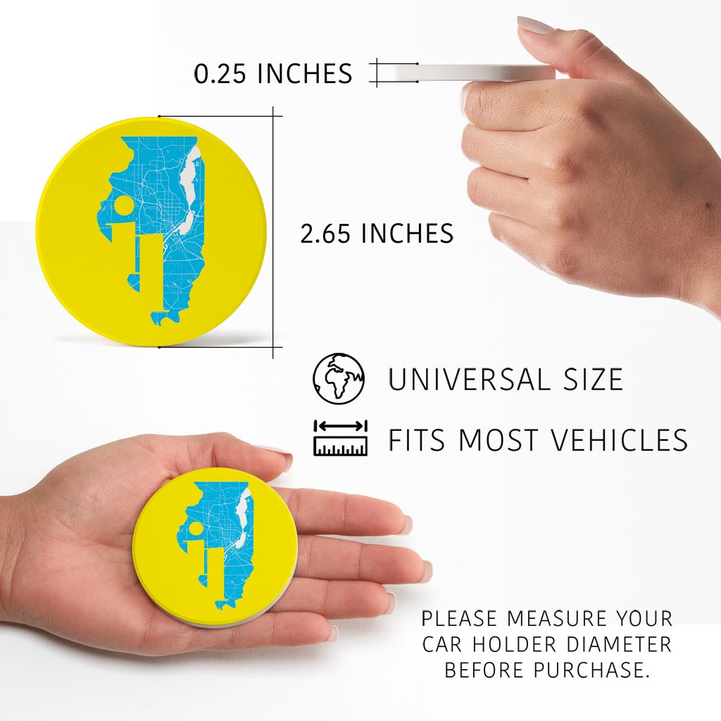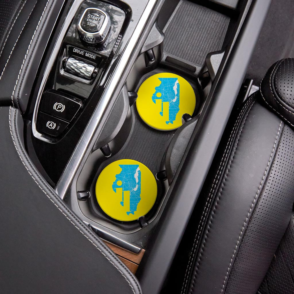 Bright Modern Abbreviated State Yellow Illinois| Absorbent Car Coasters | Set of 2 | Min 4